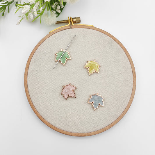 Cuidadores de agujas de esmalte de hoja de arce, Tiny Needle Minder para bordado, punto de cruz, trabajo con agujas, herramientas de punta de aguja