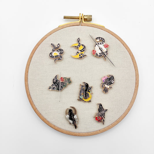Organizador de agujas de esmalte de serpiente/cuervo negro, organizador de agujas pequeño, organizador de agujas pequeño para bordado, punto de cruz, bordado, herramientas de punta de aguja