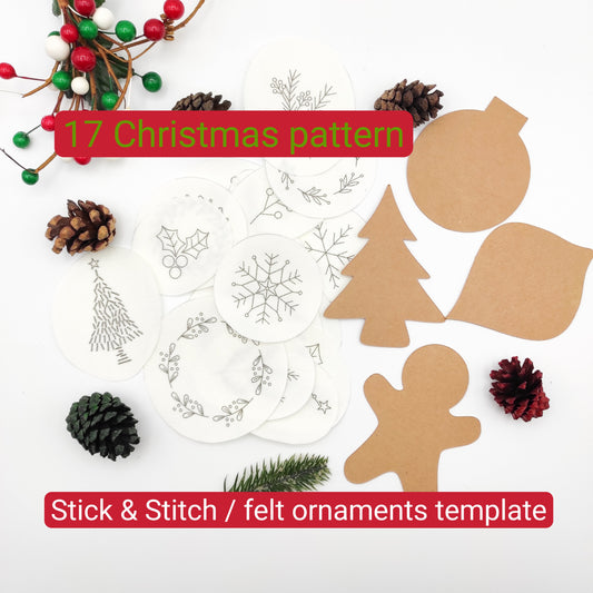 Patrones de bordado navideños Stick & Stitch, patrones de bordado DIY para adornos de fieltro