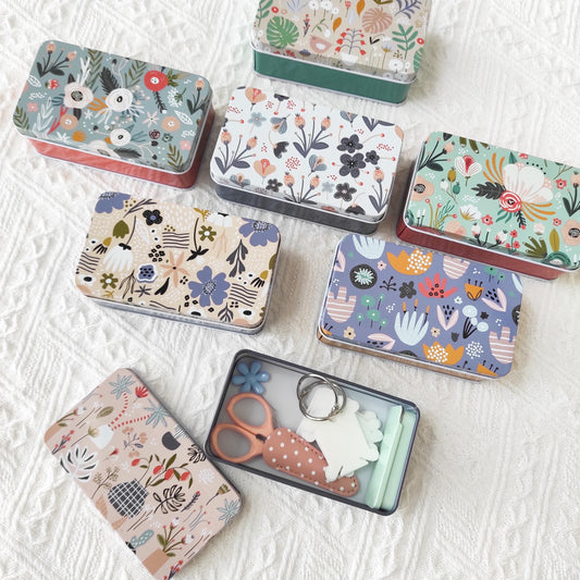 Kit de herramientas de bordado portátil con diseño floral en lata, organizador para coser, bordar, punto de cruz y bordado en cualquier lugar.
