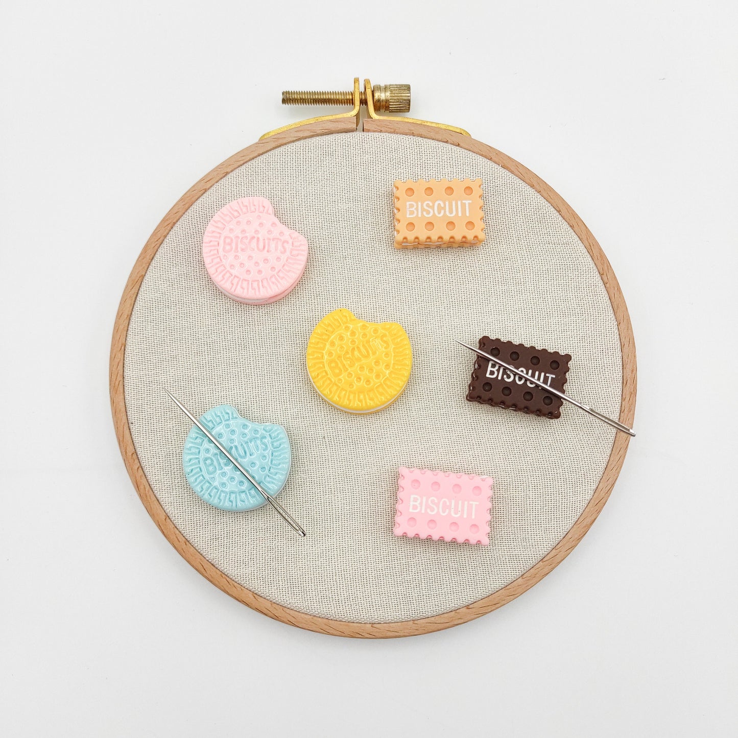 Guardaagujas de resina con forma de galleta, bonitos guardaagujas para bordado, punto de cruz, labores de aguja, herramientas de bordado, guardaagujas