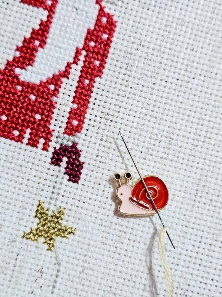 Oh my gosh, this is my first ever needle minder and it is just soooo adorable!!! I love the size also, and it's my favorite color combo - pink and red! Thank you so much!! 🐌🥰