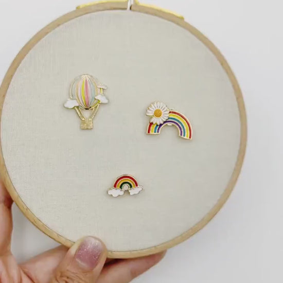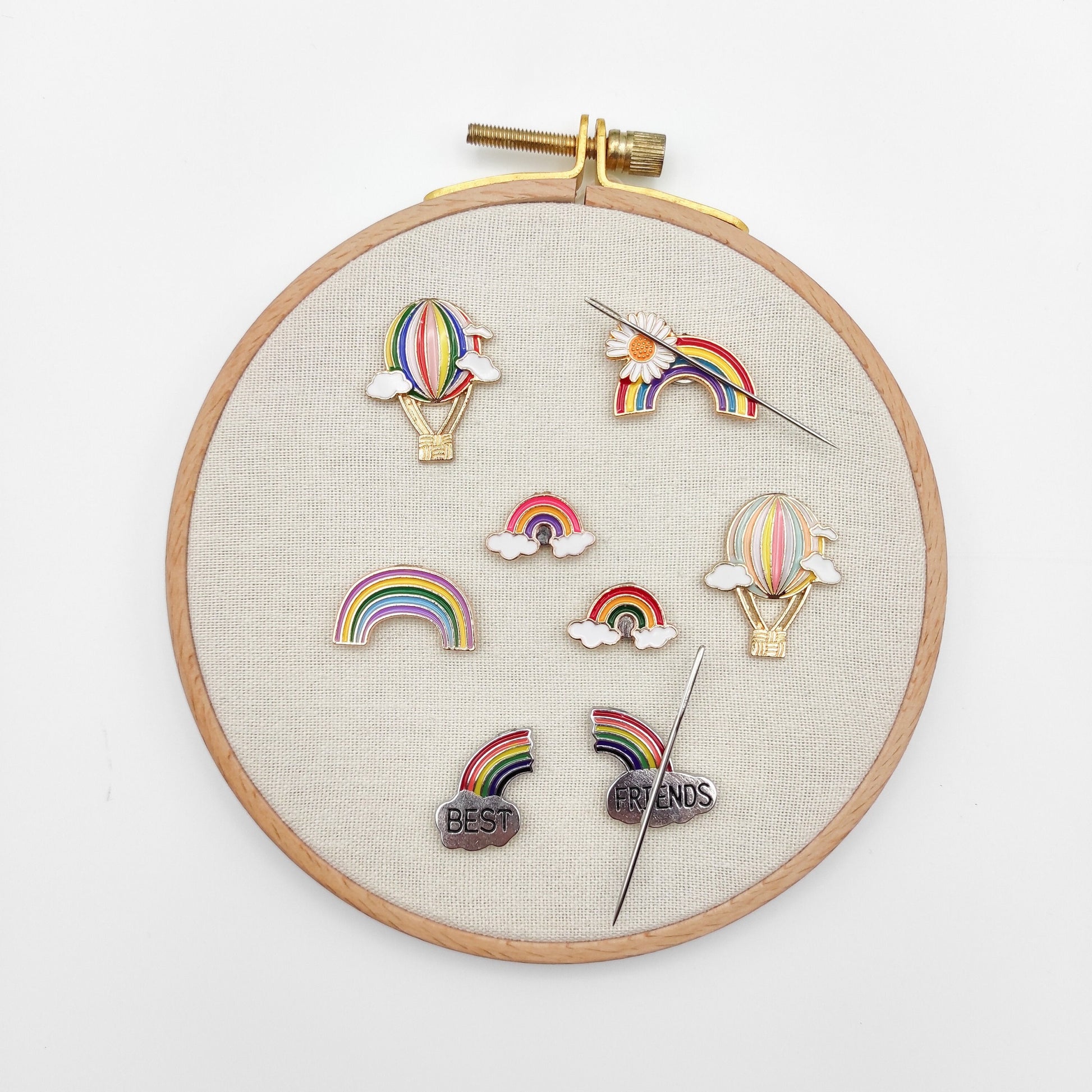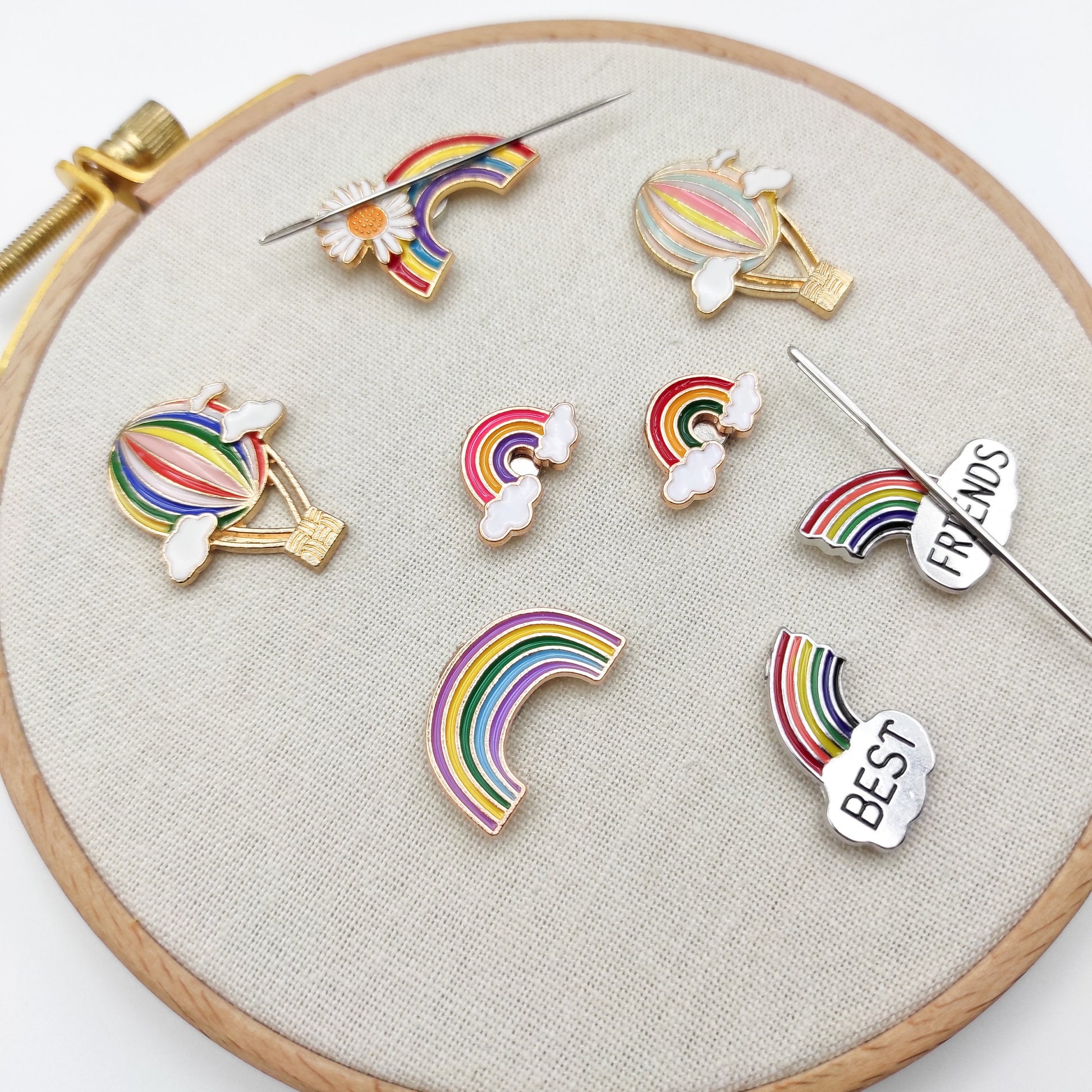 Recordatorio de agujas de esmalte con forma de globo aerostático o arcoíris, recordatorio de agujas para bordado, punto de cruz, trabajos con aguja, manualidades con aguja y costura.