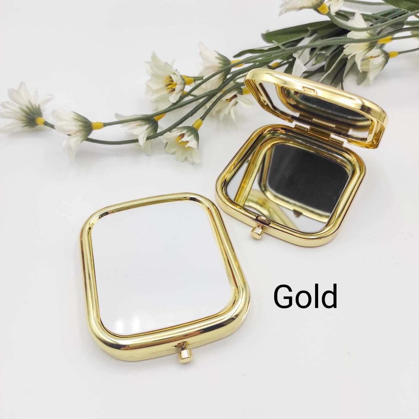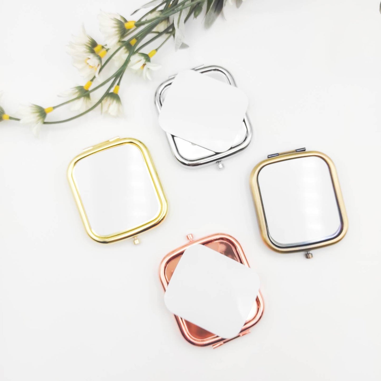 Espejo de bolsillo cuadrado en blanco con dos espejos laterales: