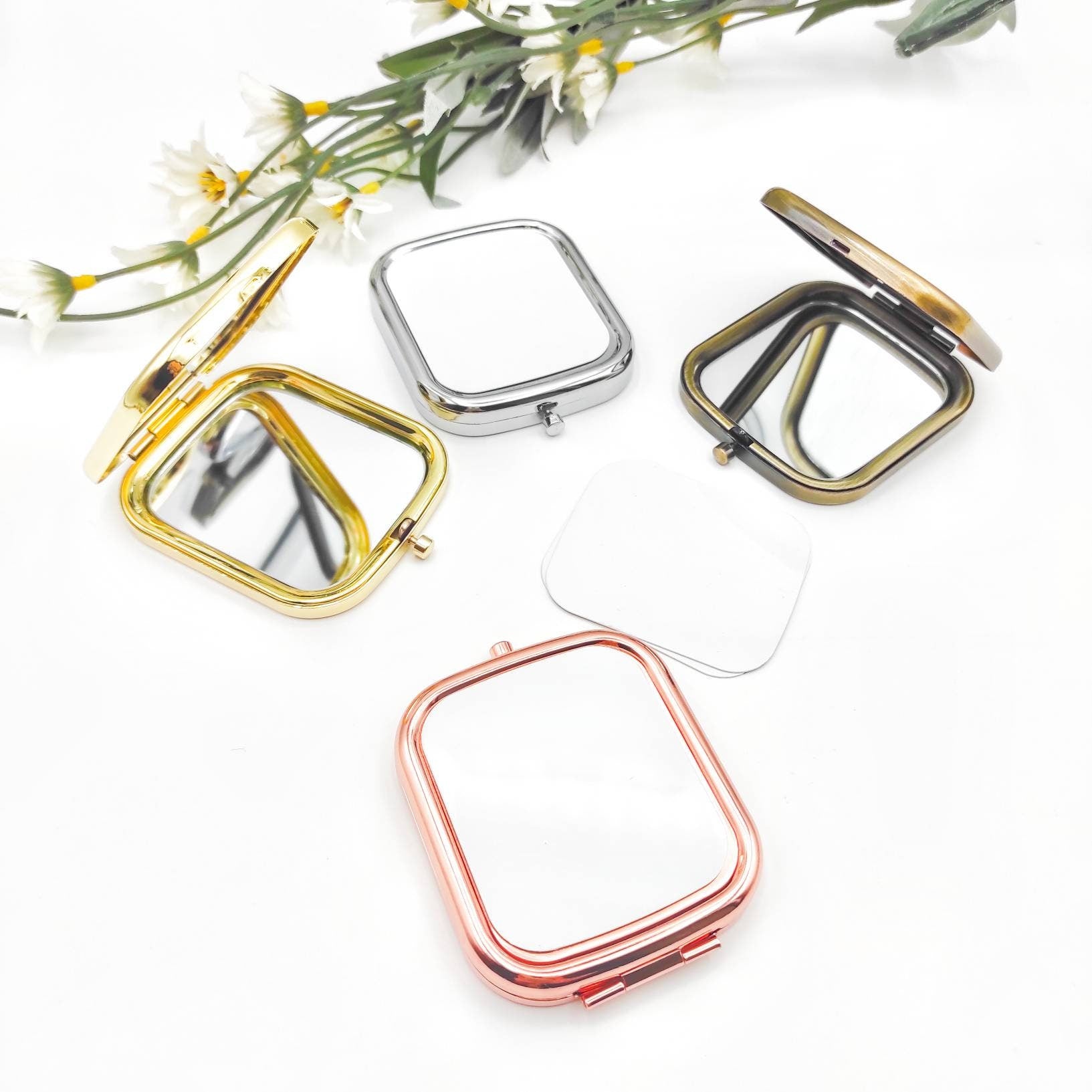 Kit de espejo de bolsillo de bordado cuadrado, espejo compacto en blanco para coser, bordado, punto de cruz o punta de aguja, espejo compacto cuadrado