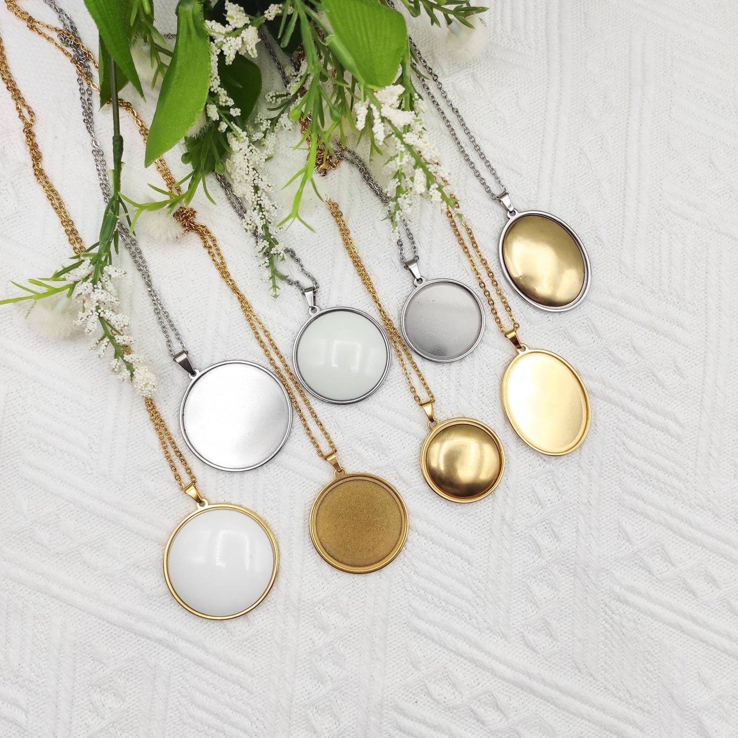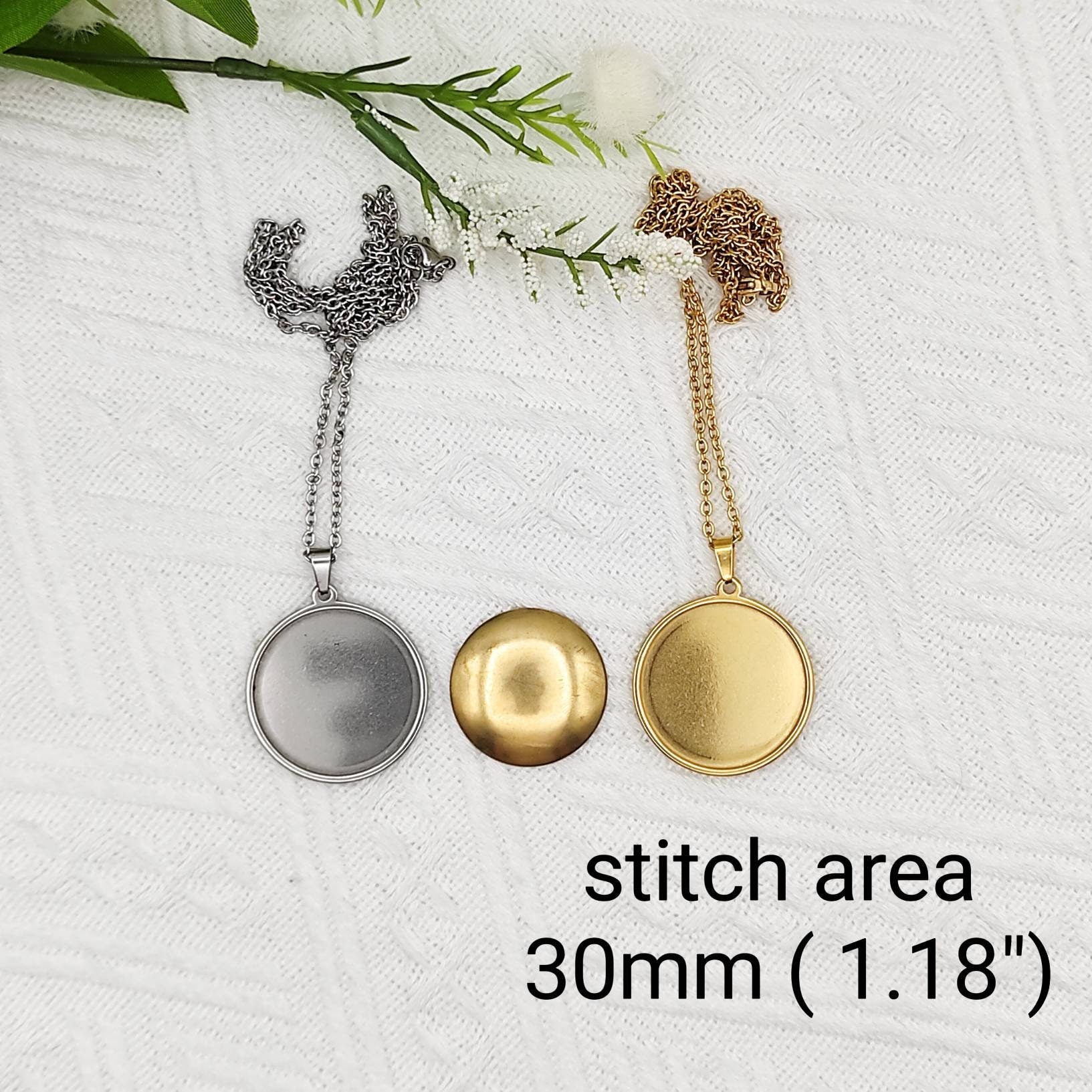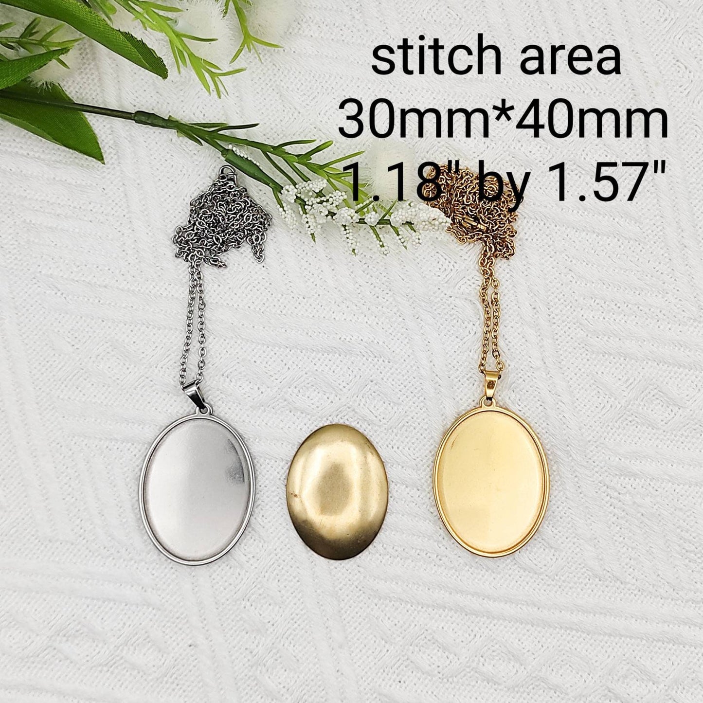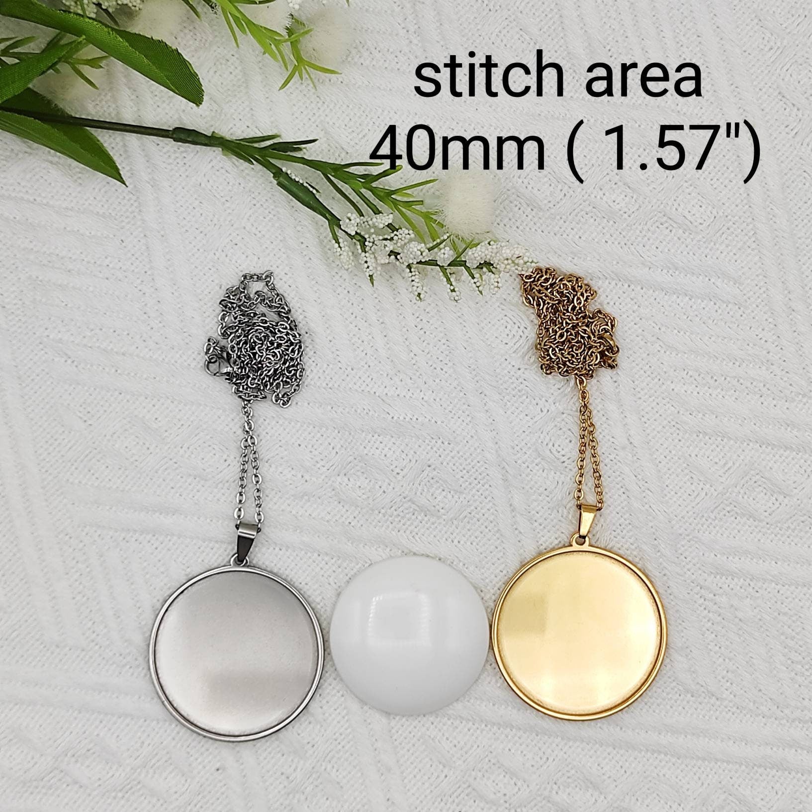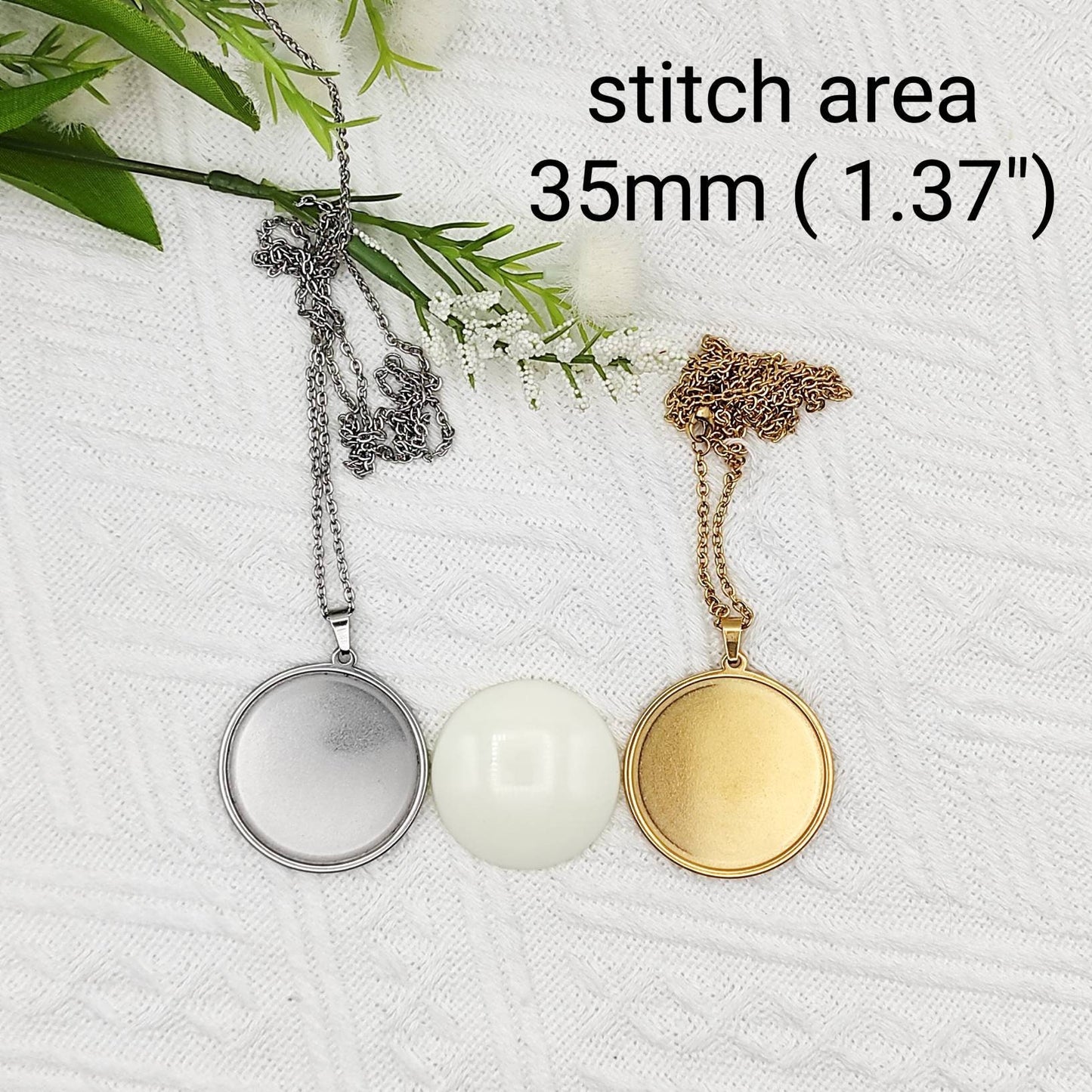 Colgante grande en blanco de acero inoxidable, bordado DIY/puntada a mano/punto de cruz/ganchillo/kit de collar de costura