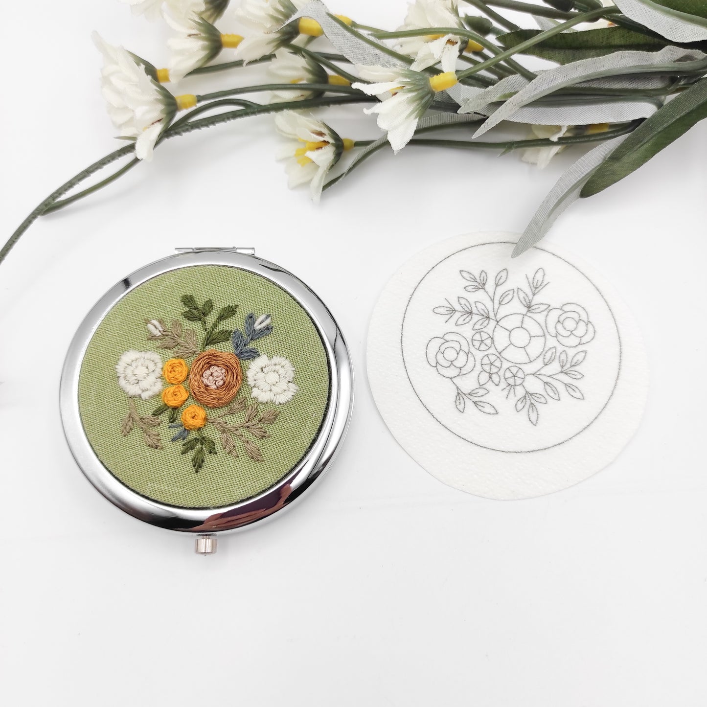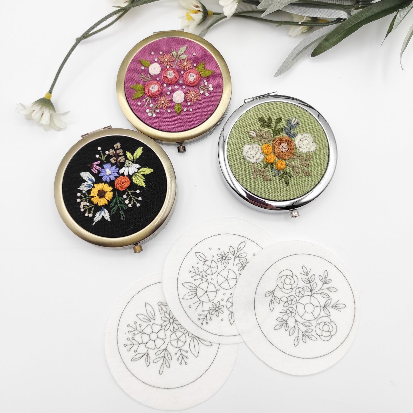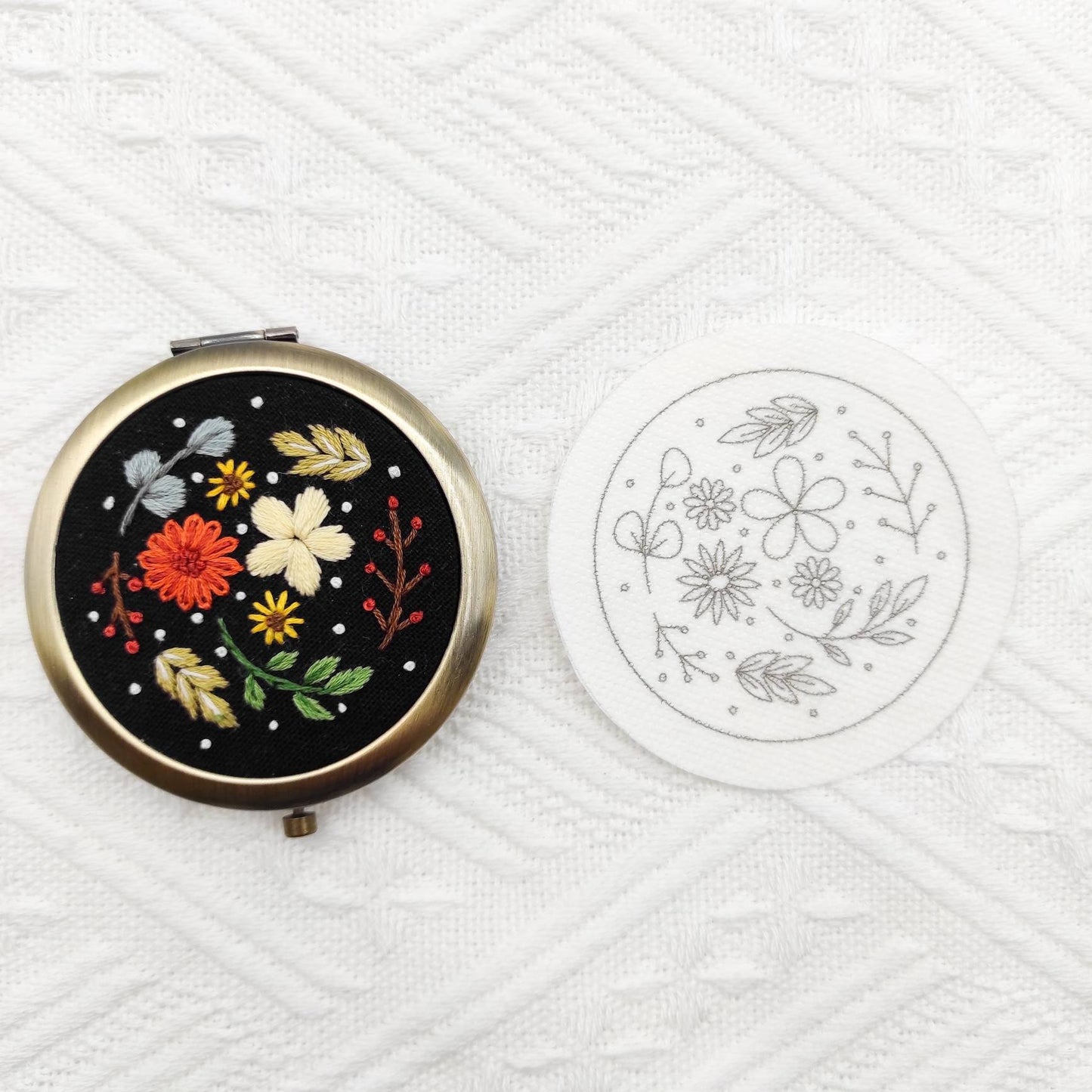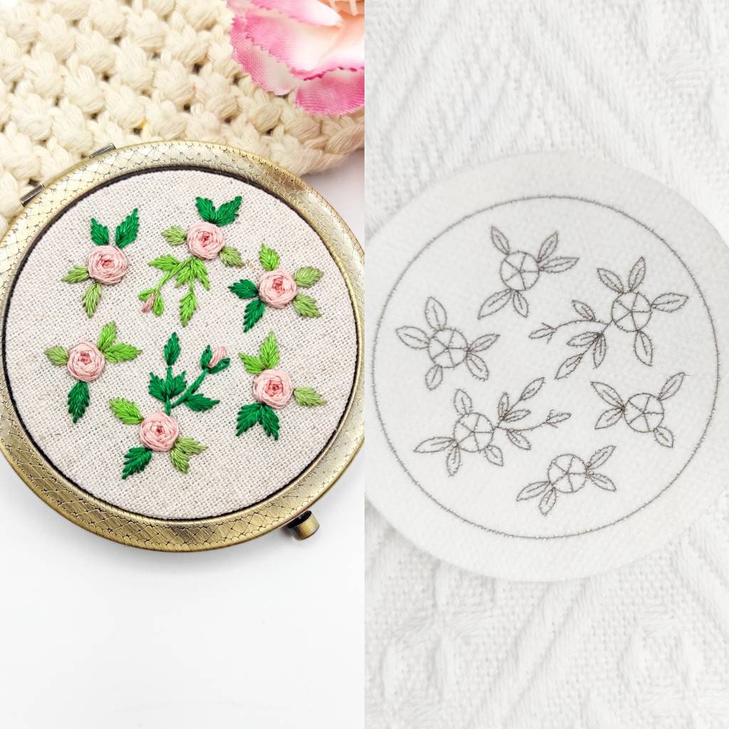 Patrones de bordado Stick & Stitch, patrones de bordado DIY para pastillero grande/espejo de bolsillo, patrón de bordado preimpreso soluble en agua