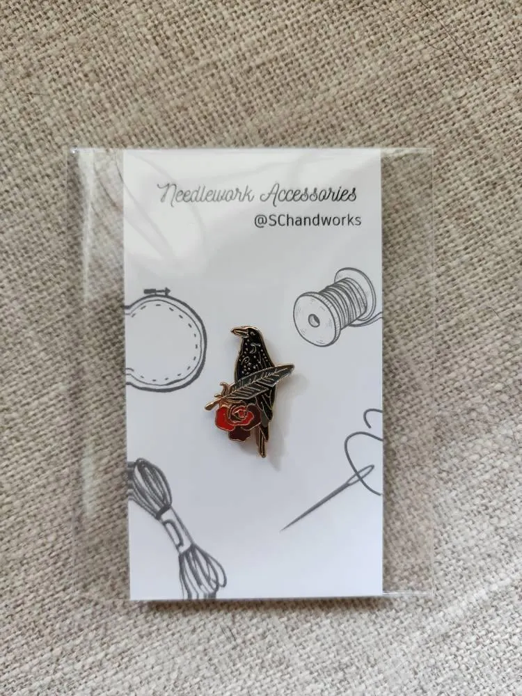 Porte-aiguilles en émail Black Snake/Crow, petit porte-aiguilles, pour broderie, point de croix, travaux d'aiguille, outils de point d'aiguille