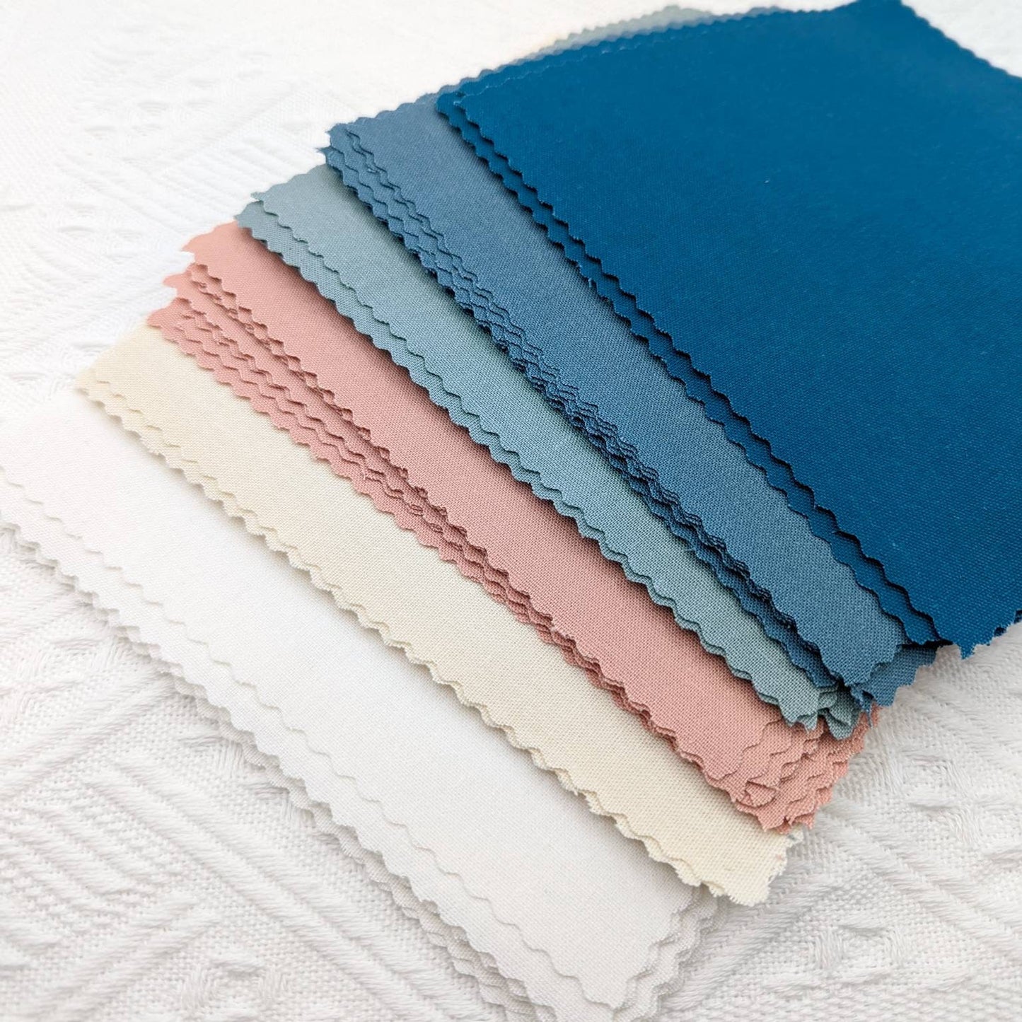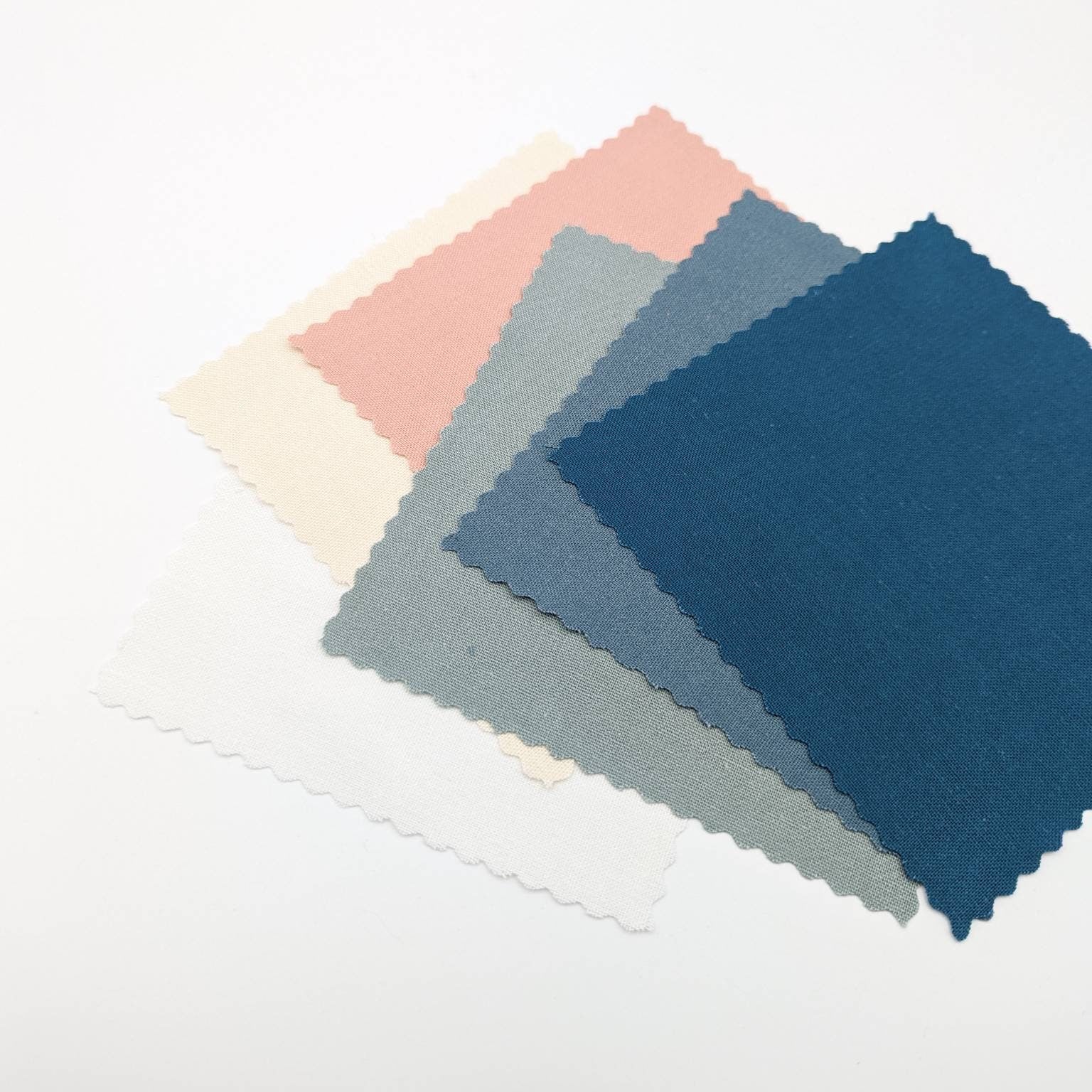 These are quality cotton-linen blend fabric of 45% cotton and 55% linen. These fabrics are so perfect that they are the same that I use for my own embroidery projects. They are plain and even weave fabrics. There are a total of 51 colors to choose from (check my other listings below). They are low-saturation colors, easy to match, and soft colors.