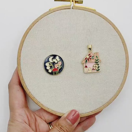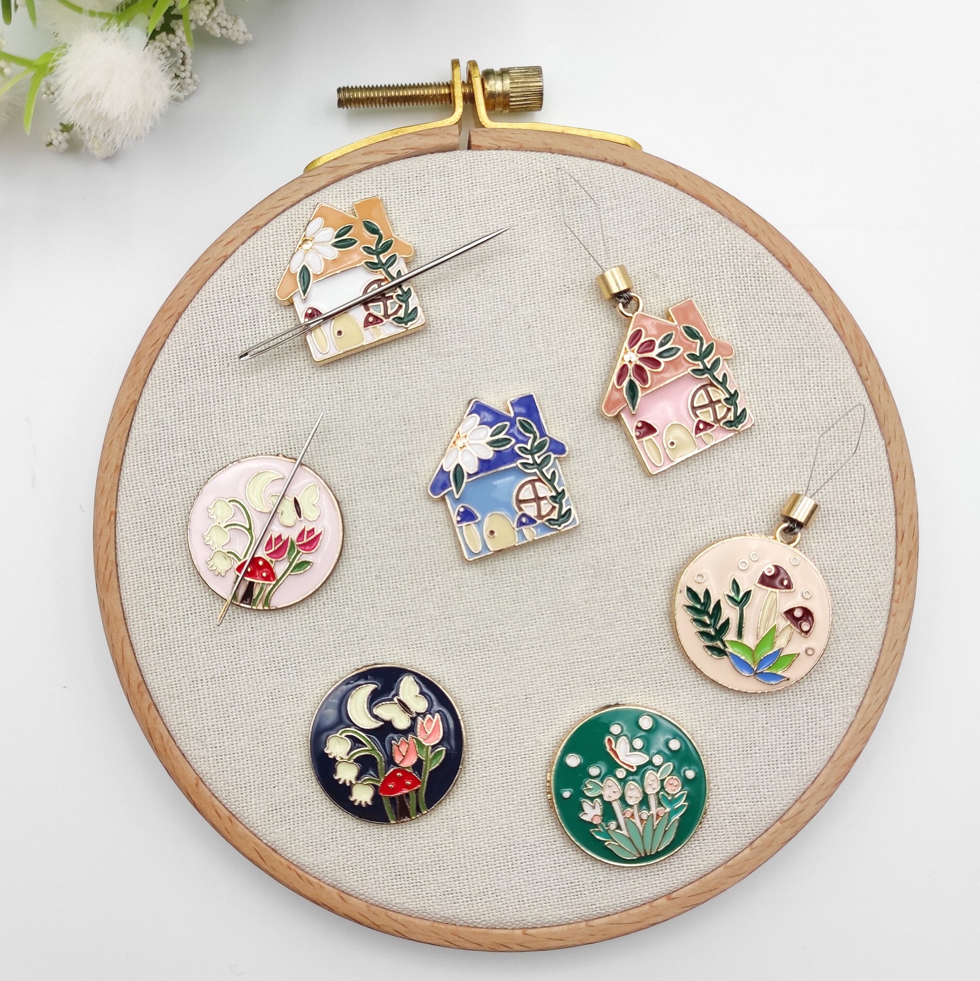 Floral Enamel Needle Minder, Needle Threader, Garden Needle Minder/ Threader for Embroidery/ Cross Stitch/Needle work/Needlecraft/Sewing.