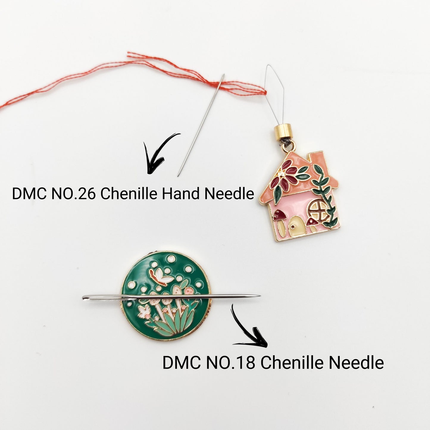 I got you! Check out these needle minders, needle threaders and NOW needle minder/threader combos! The needle minder and combos include strong neodymium magnet to hold your needles in place. And it can easily pick up a large chenille needle. You will not have to worry about loosing a needle, and can easily keep them in place right by your work! I use the fine and strong wire to make the needle minders. The wire is a little bit thicker than factory mass produced needle threaders. But they work well with most of my hand embroidery needles. Also, they're durable and beautiful.