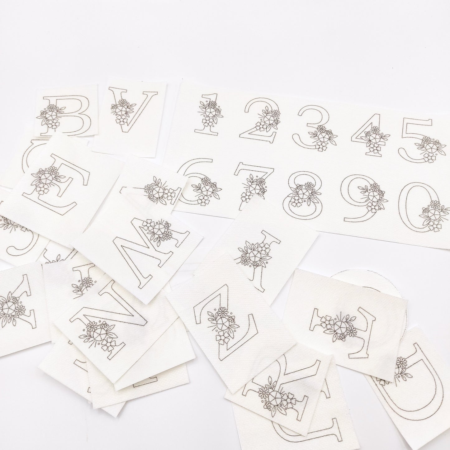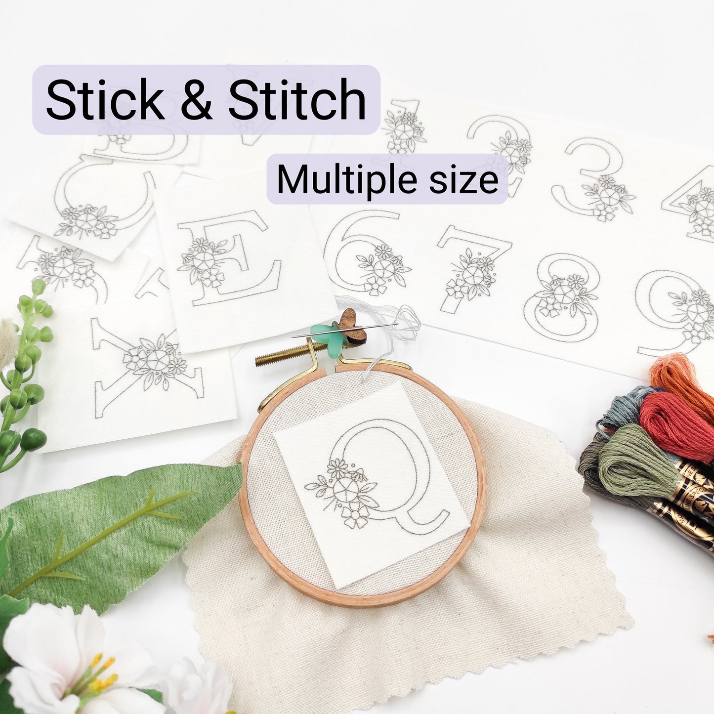 Floral letters/numbers stick and stitch pattern, DIY embroidery floral patterns for ornaments/clothes/bags/kitchen towel/pillow case