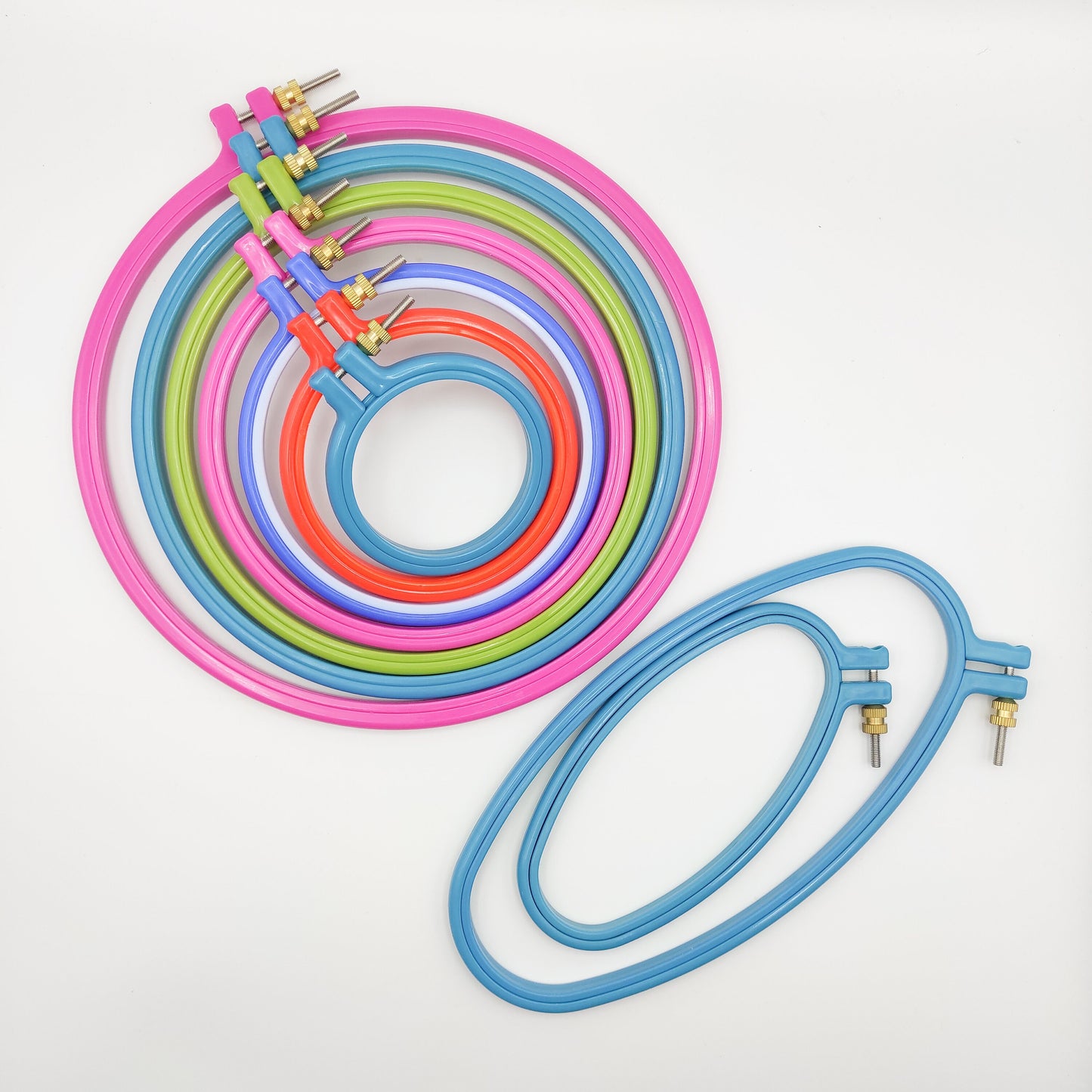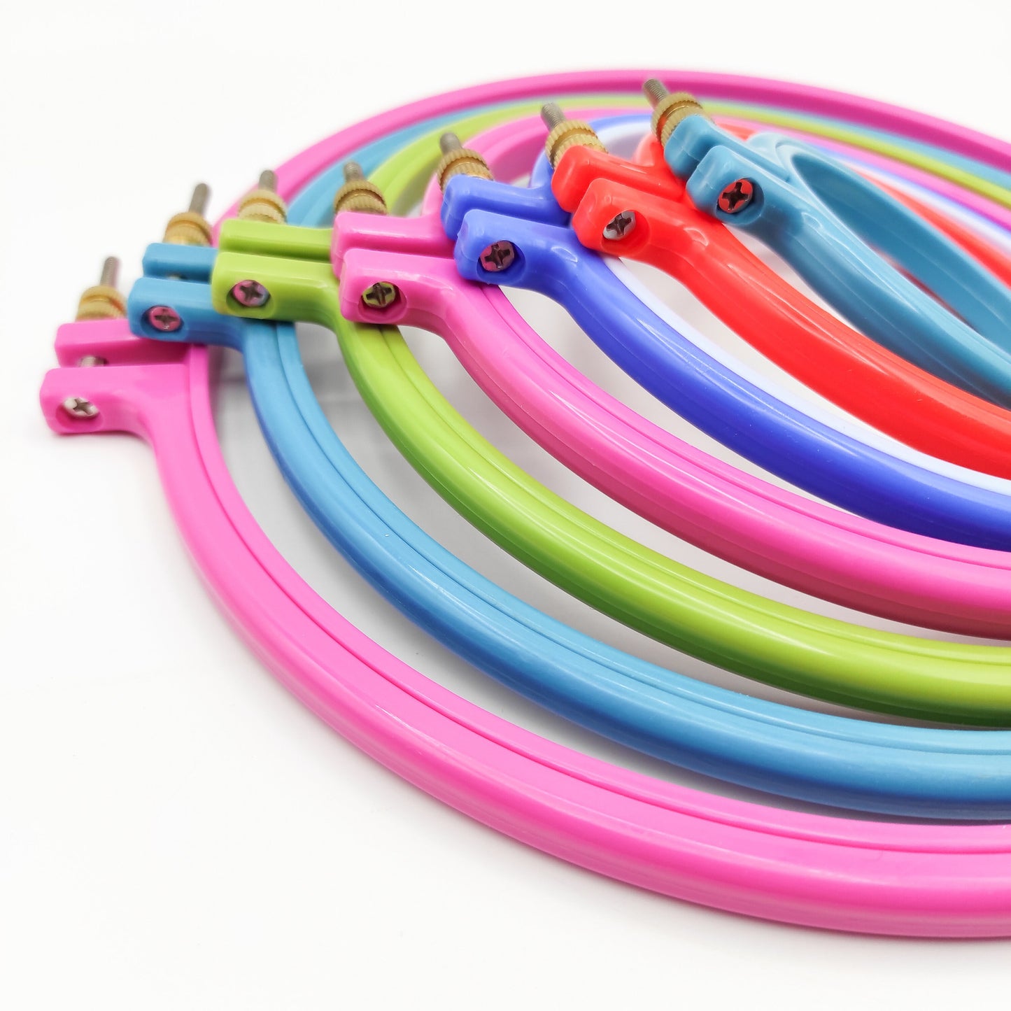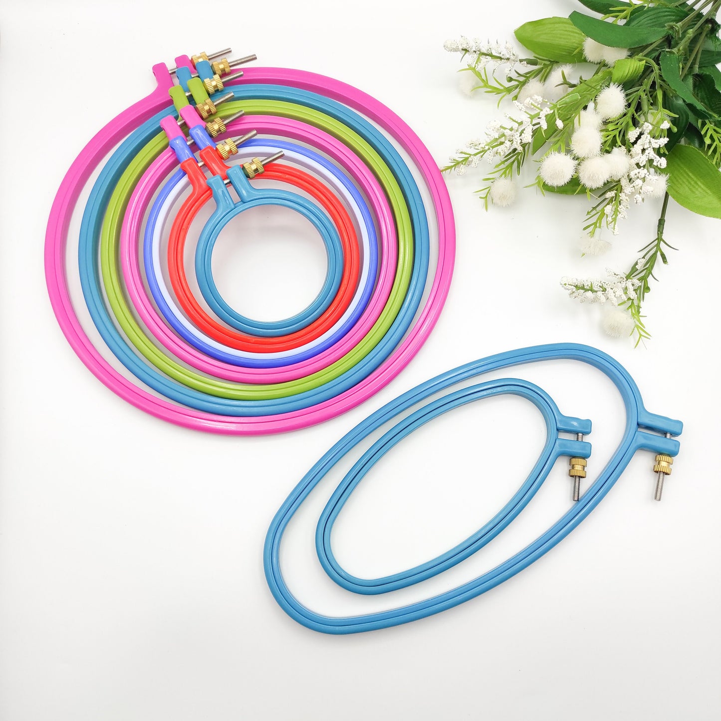 Multiple Sizes of Colorful Round Plastic Hoops for hand Stitching, Embroidery, Cross stitch, Needlework Frame, Round embroidery display.