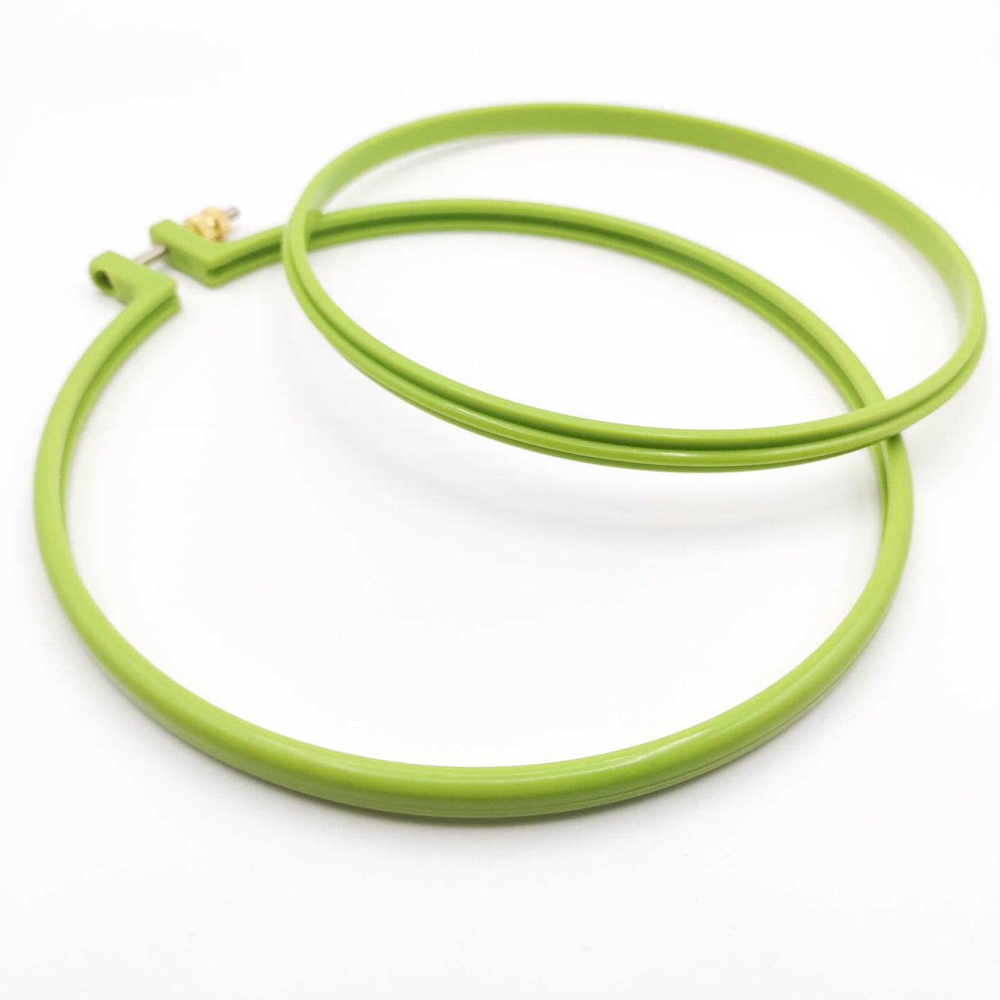 These hoops are perfect for you! I tried many styles of plastic embroidery hoops. This one is easy to use. And the inner side of the hoop is curved and slotted, which can effectively tighten the fabric. If you are looking for a nice color and practical hoops, look no future.