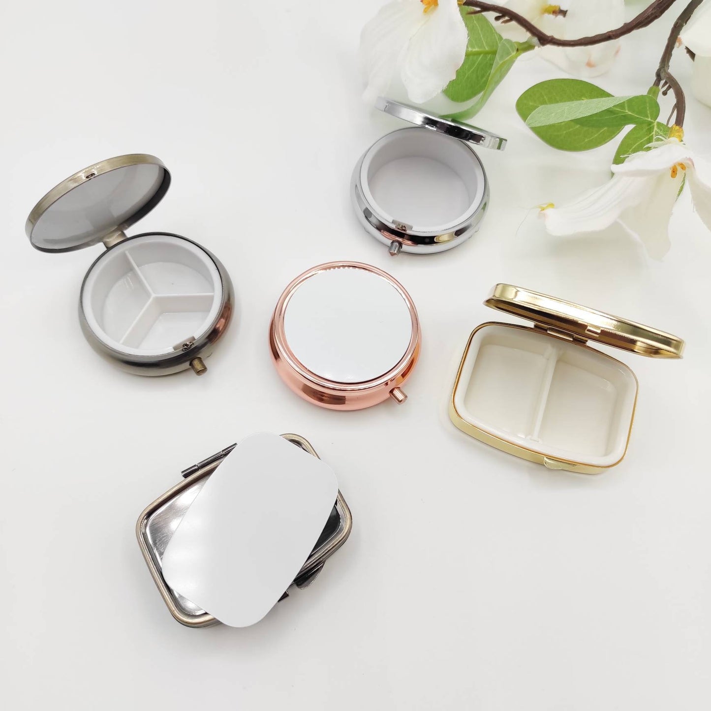 Small Round pill box (1 blank and 3 blank) with matching metal backing disc