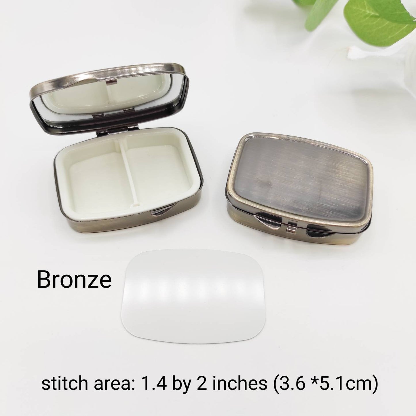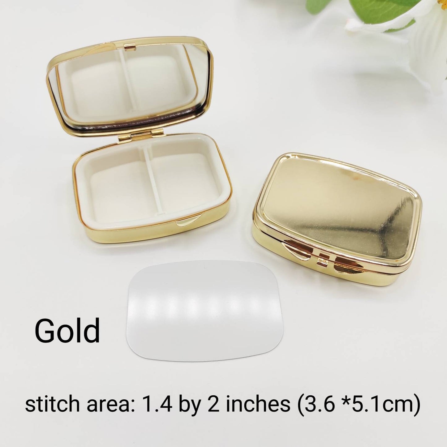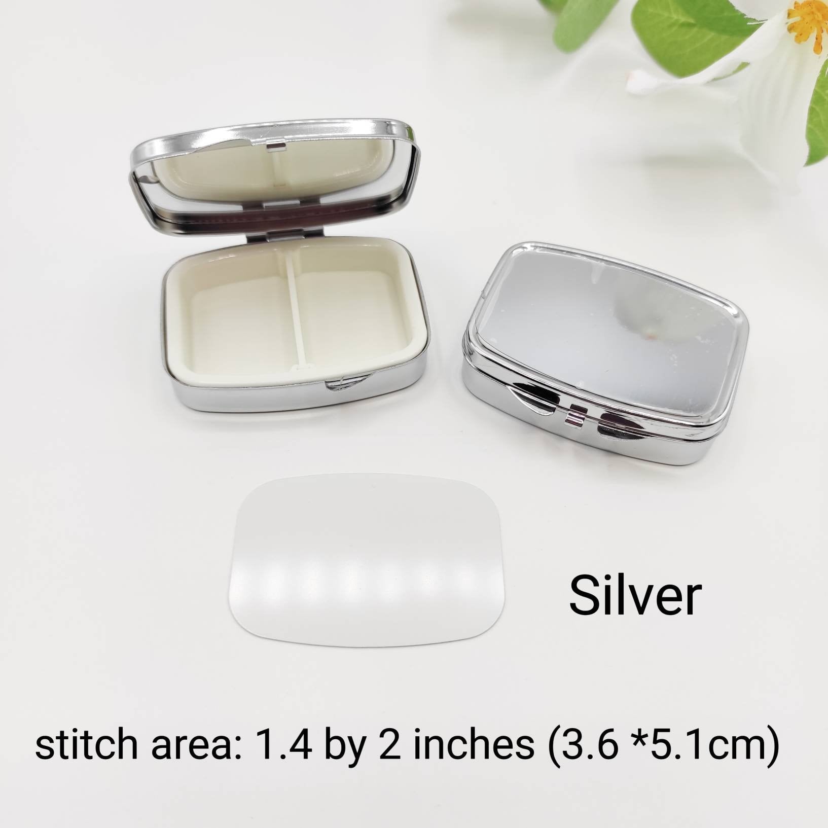 Small Rectangle pill box (2 blank) with matching metal backing disc
