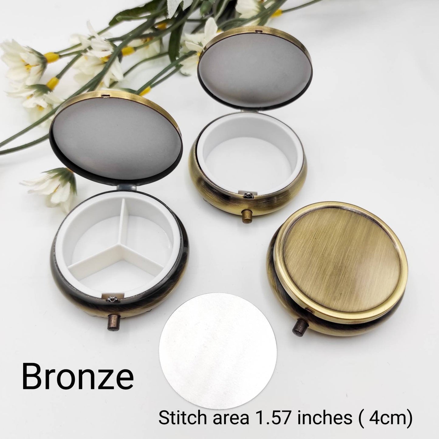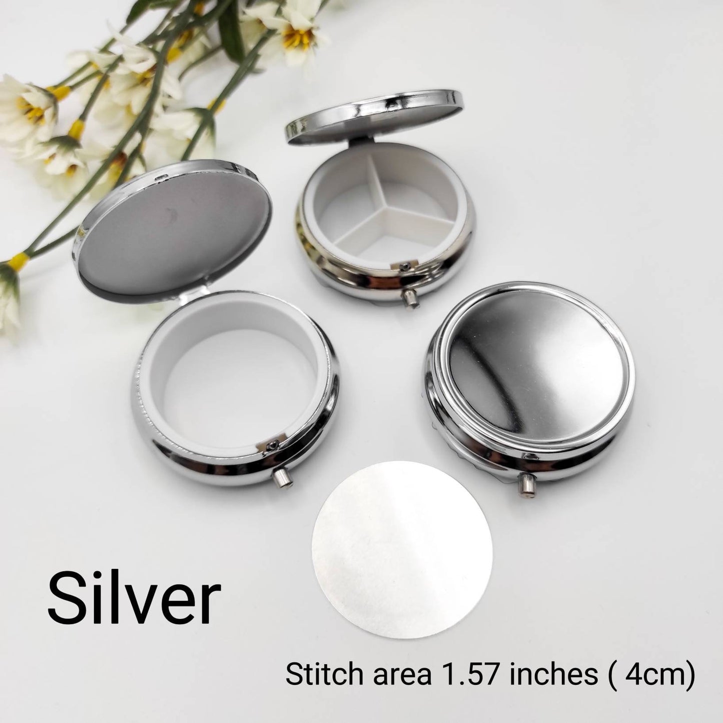 This is the perfect kit to make your own embroidered pillbox for the one you care about. This kit includes a pillbox and metal backing disc, which is used to mount your embroidery to the pill case.