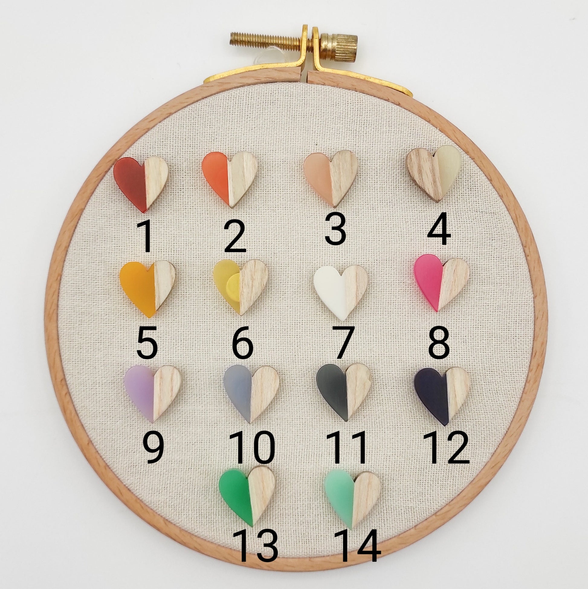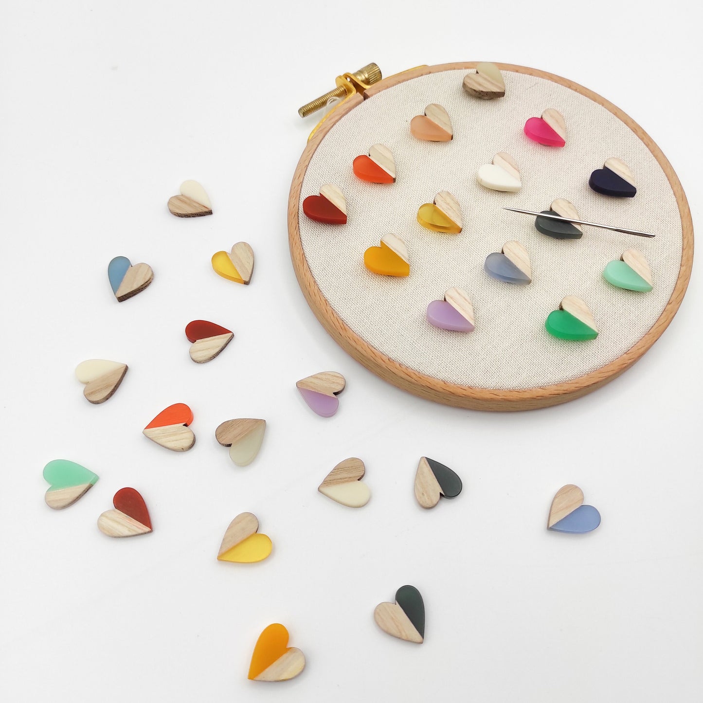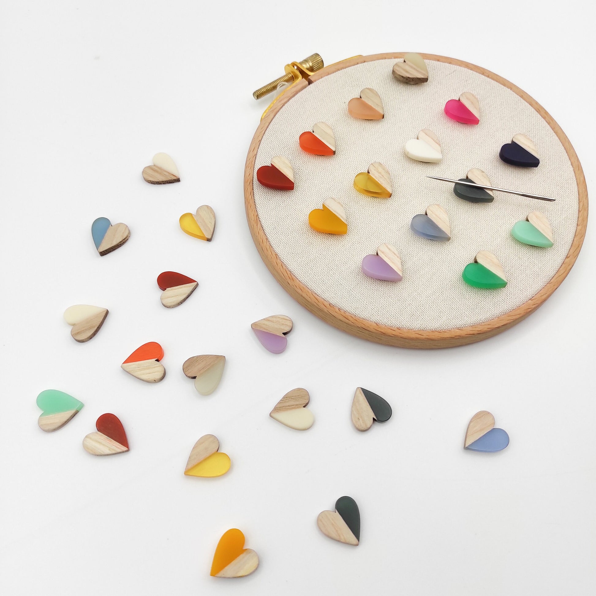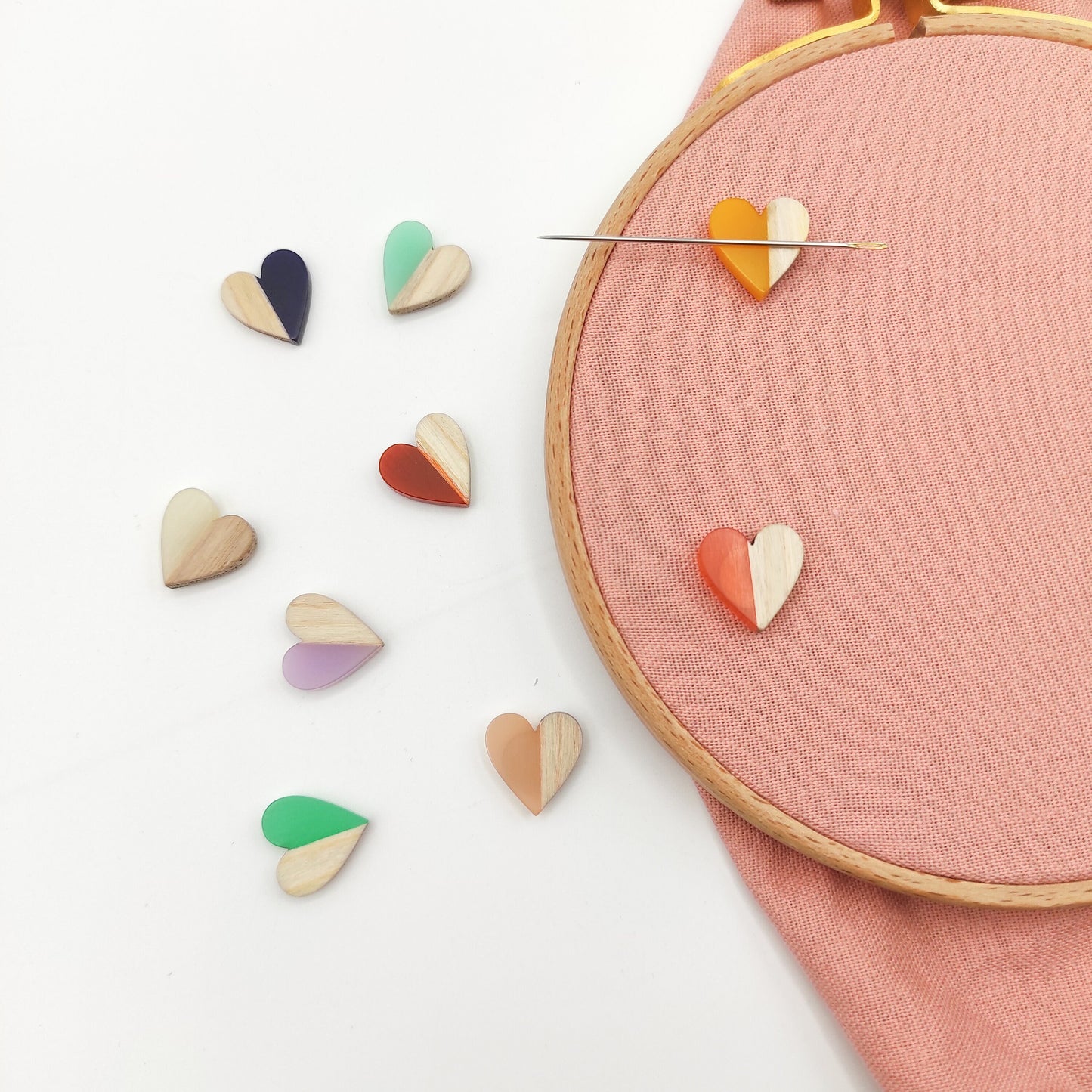 Small Heart Wood and Resin needle minders, Tiny Needle Minder for Embroidery, Cross Stitch, Needle work, needlecraft projects and sewing.