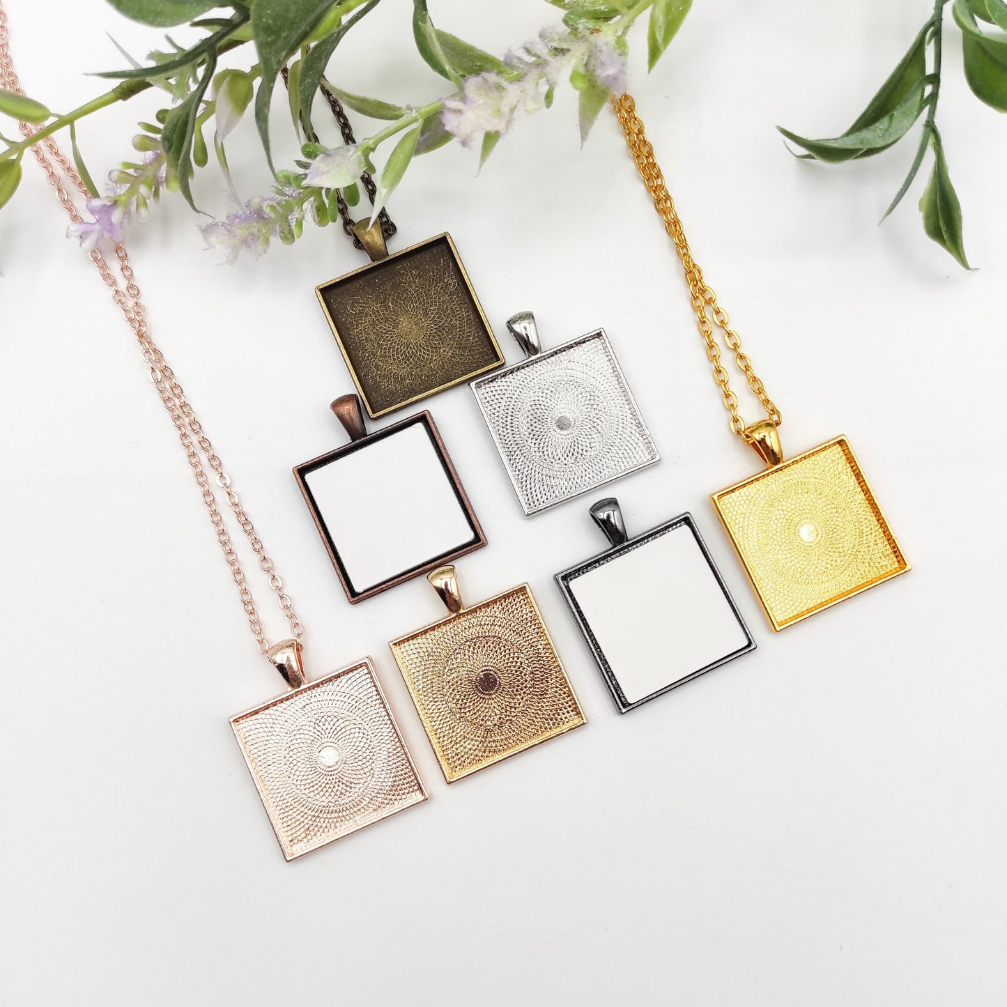 Square DIY Blank Pendant, Small Embroidery Pendant, Embroidery necklace kit, Handmade jewelry kit, Cross Stitch Necklace kit