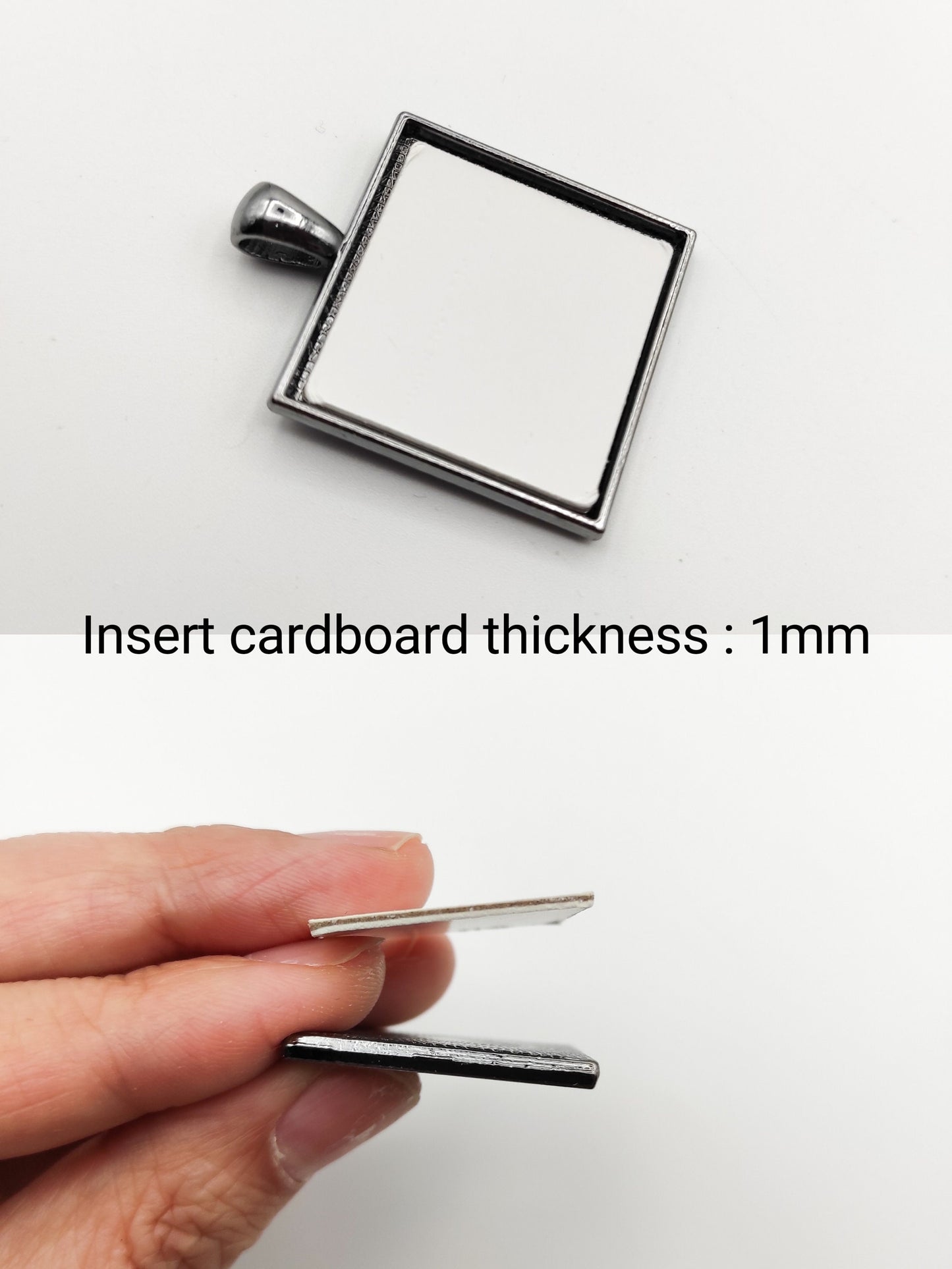 This is the perfect kit to make your own embroidered necklace. This kit includes a blank pendant, cardboard insert and matching chain. The insert cardboard thickness is 1mm. It's hard. So it's easier to handle when you wrap the fabric over.