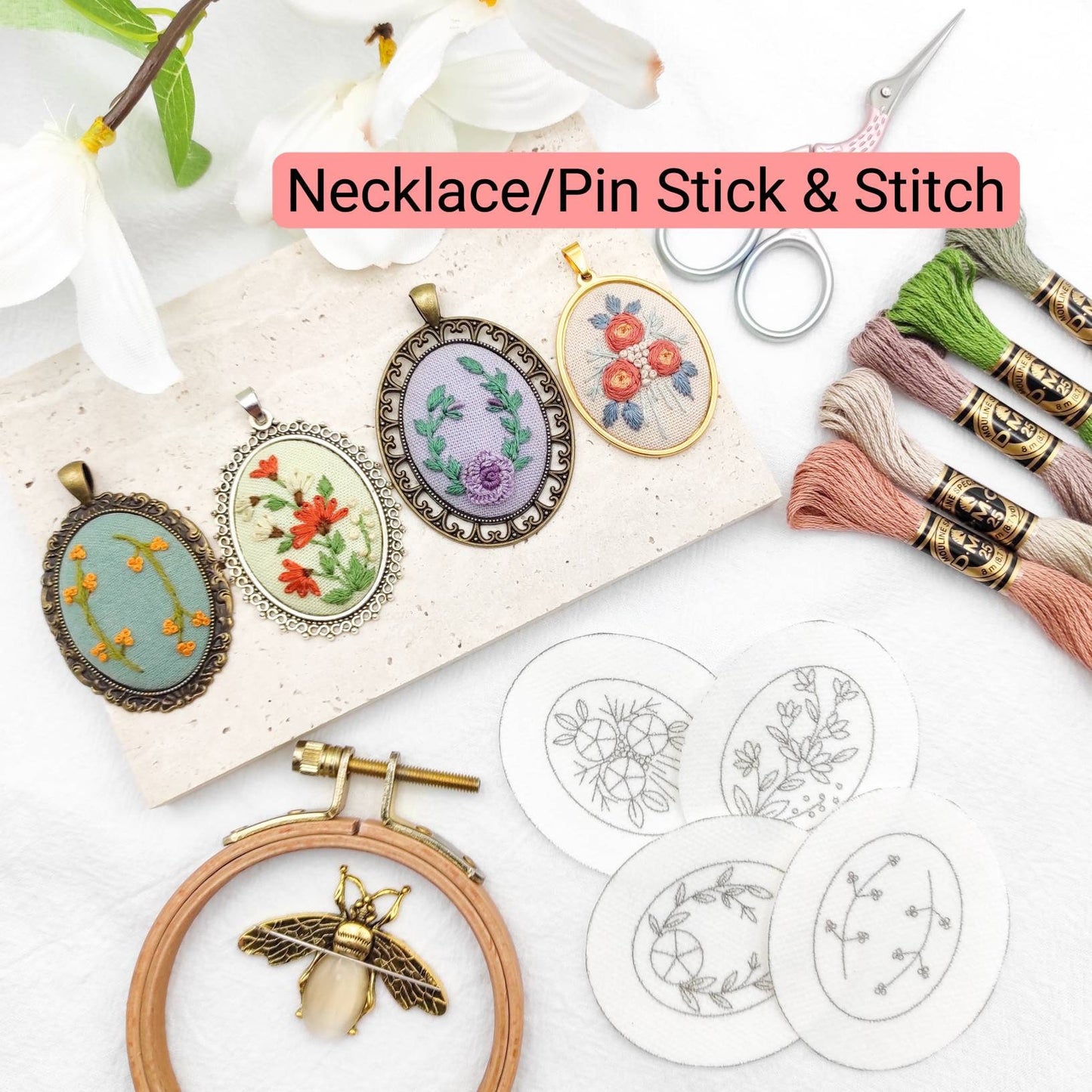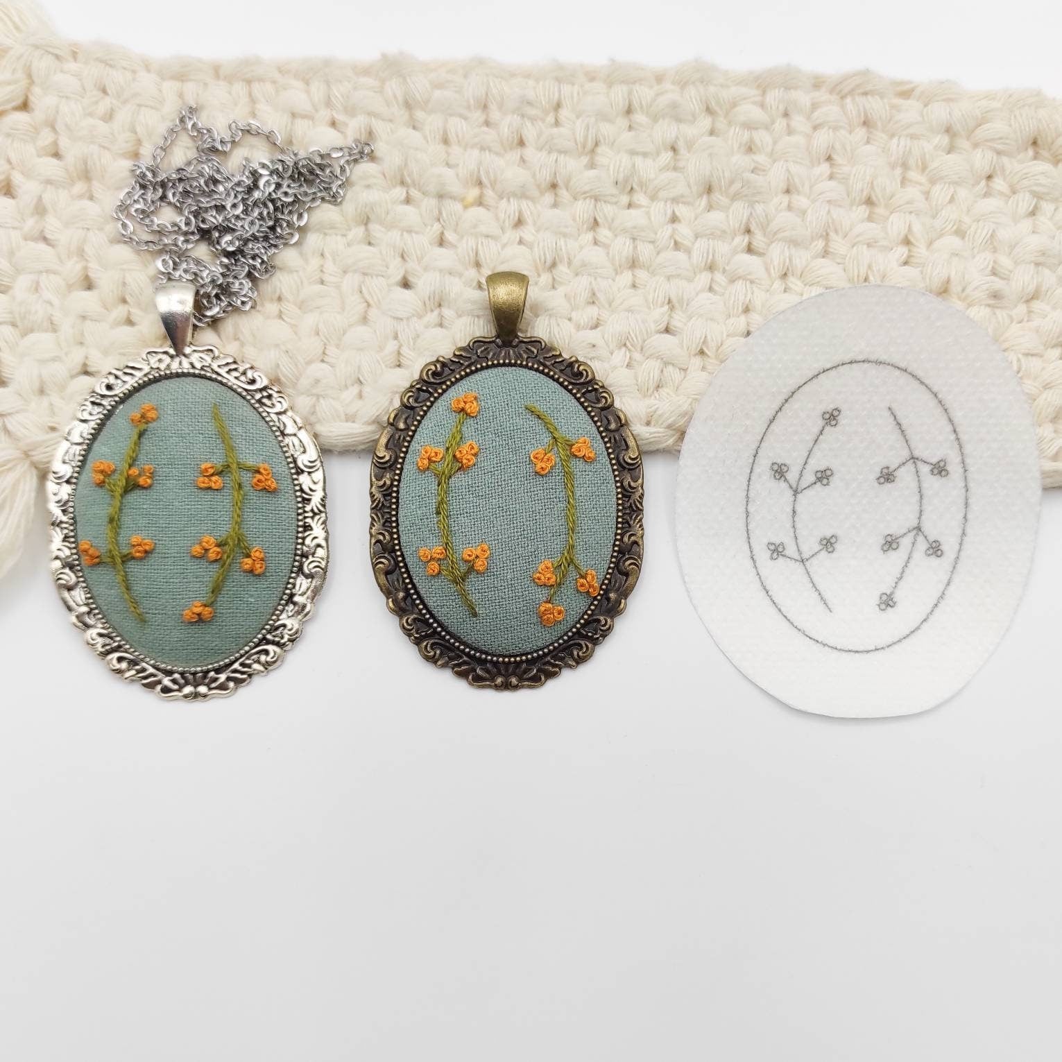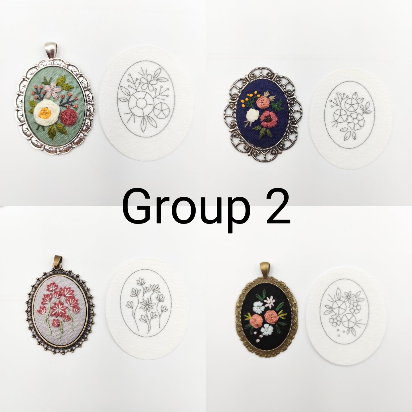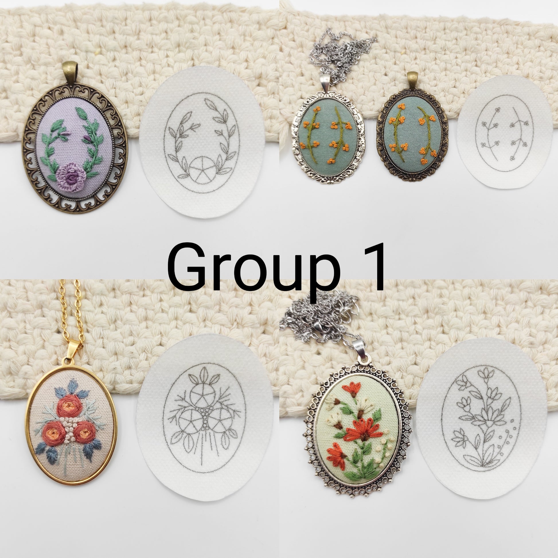 Stick & Stitch embroidery patterns, DIY embroidery floral patterns for oval necklace, water soluble pre-printed embroidery pattern