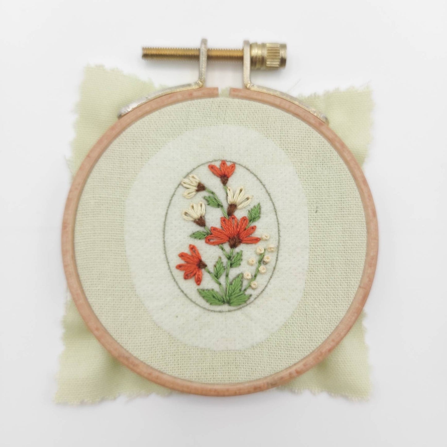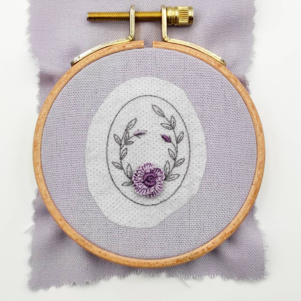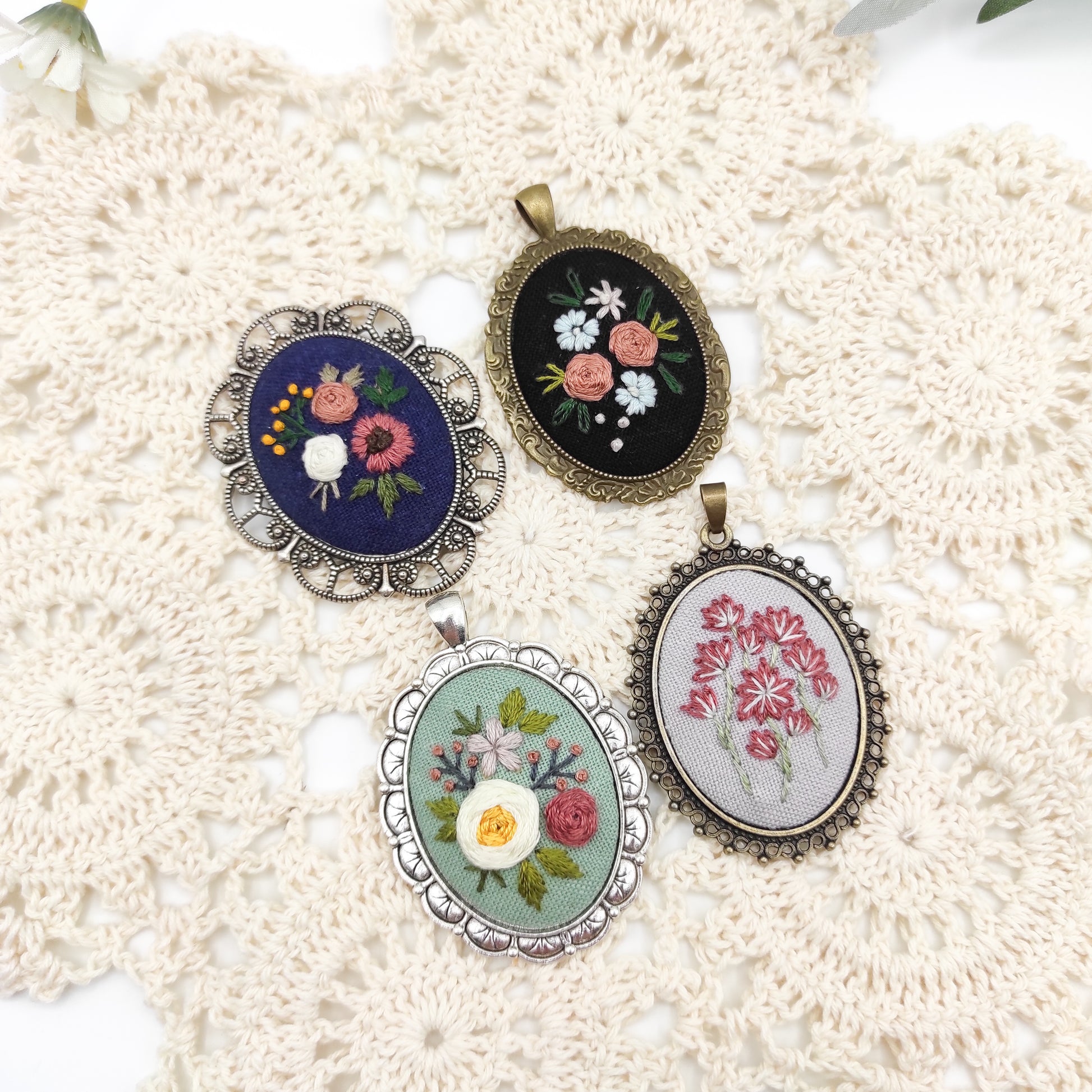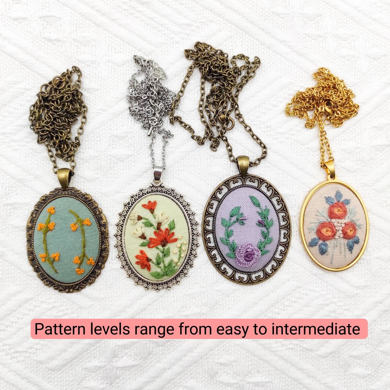 Stick & Stitch embroidery patterns, DIY embroidery floral patterns for oval necklace, water soluble pre-printed embroidery pattern