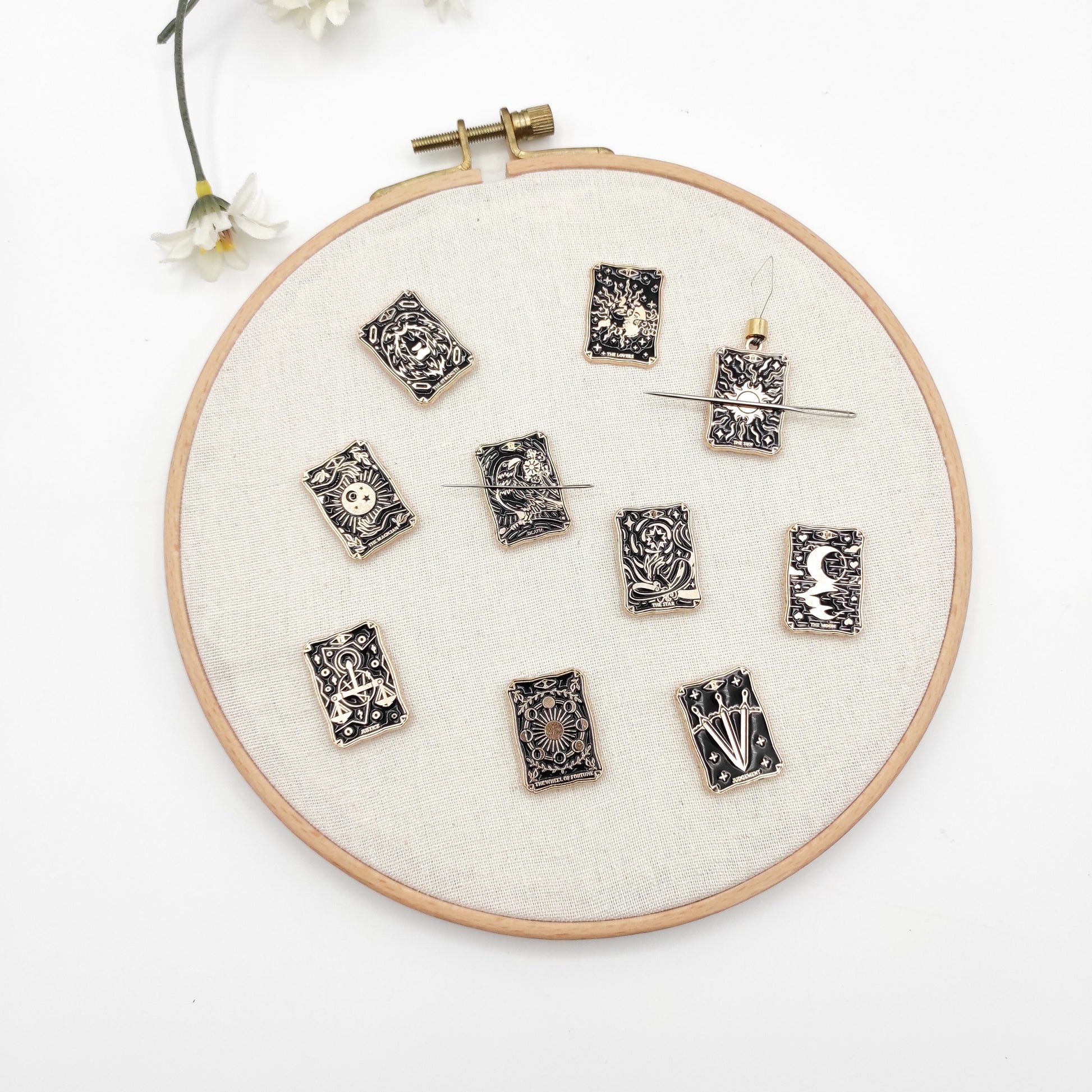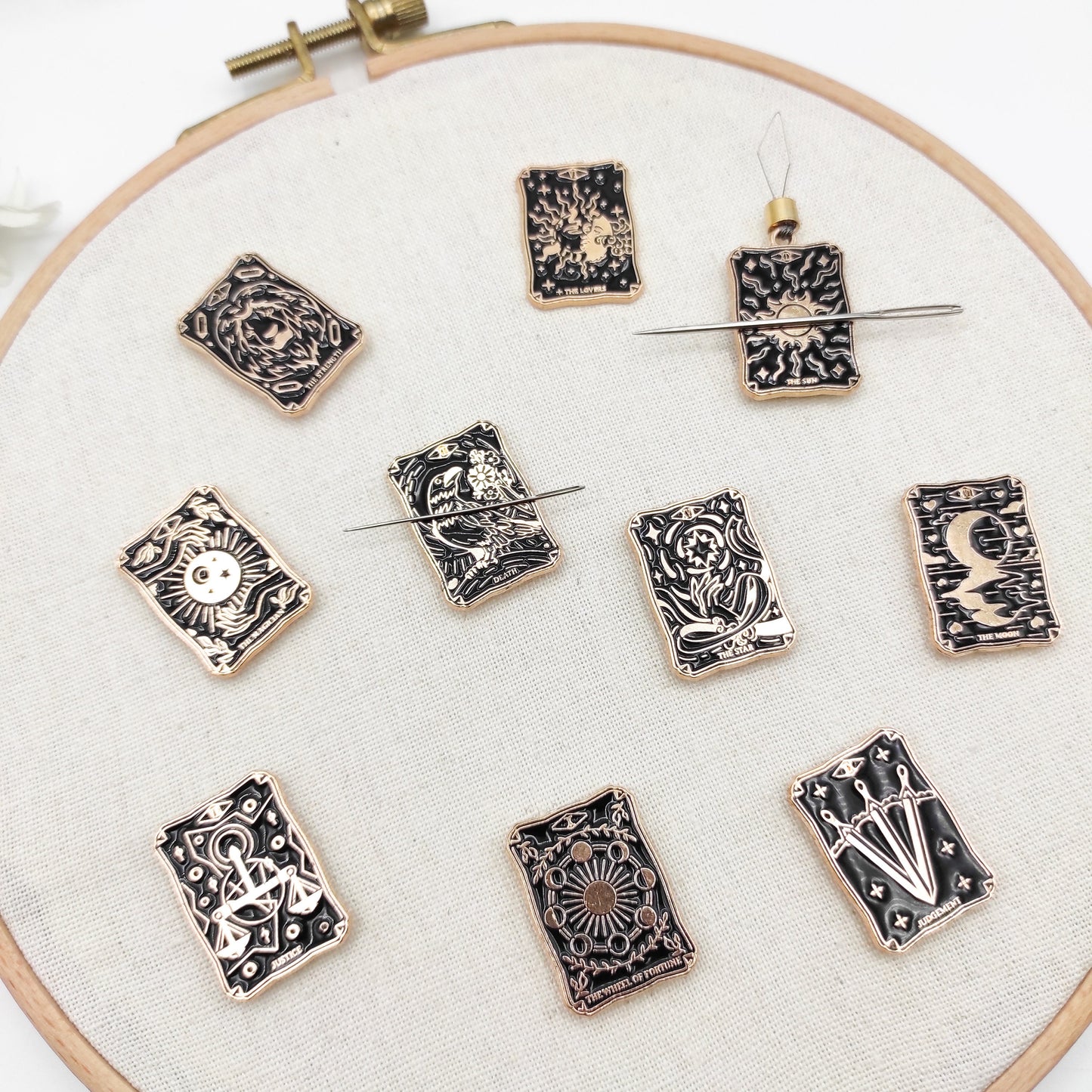 Tarot Cards Enamel Needle Minder , Needle Threader, Needle Minder/ Threader for Embroidery/ Cross Stitch/Needle work/Needlecraft/Sewing.