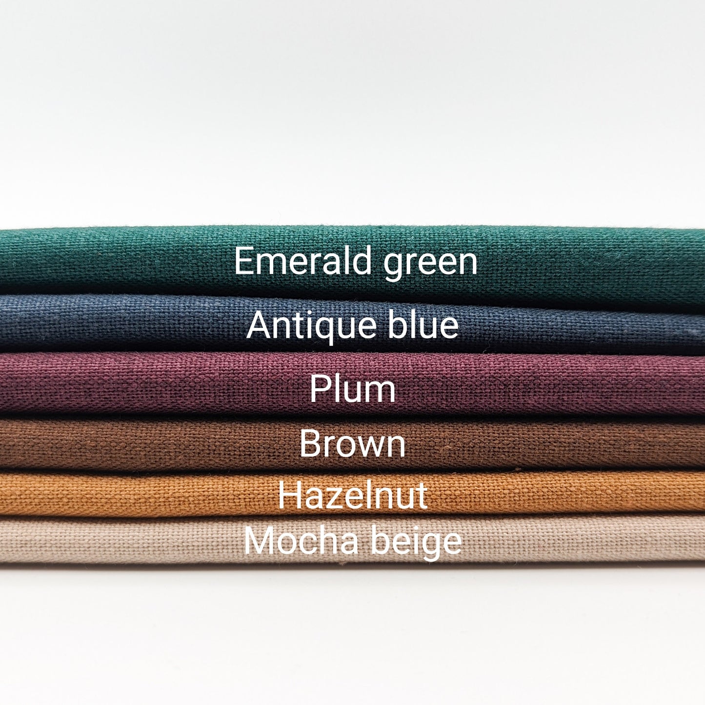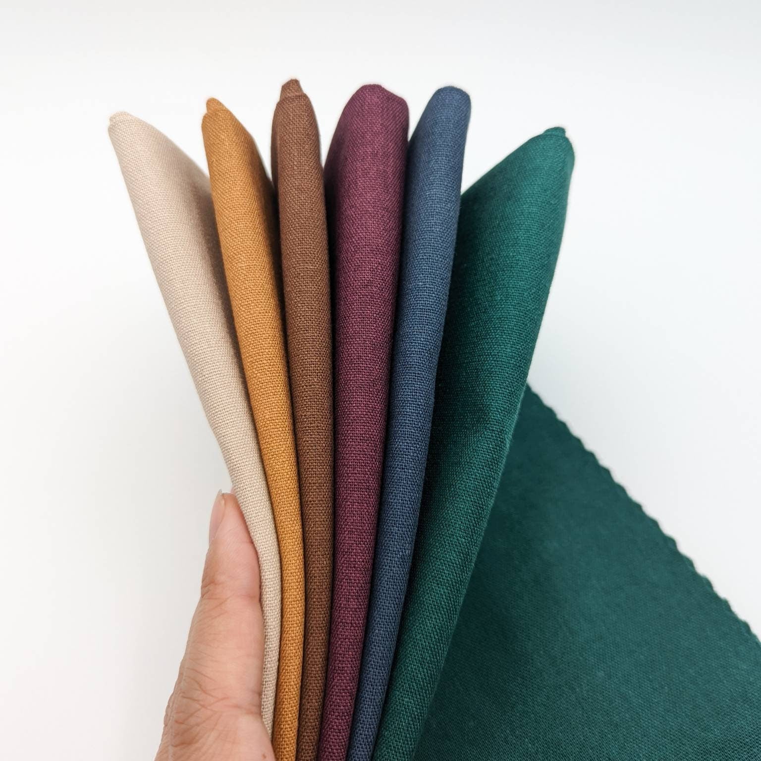 These are quality cotton-linen blend fabric of 45% cotton and 55% linen. These fabrics are so perfect that they are the same that I use for my own embroidery projects. They are plain and even weave fabrics. There are a total of 51 colors to choose from (check my other listings below). They are low-saturation colors, easy to match, and soft colors.